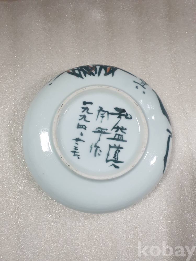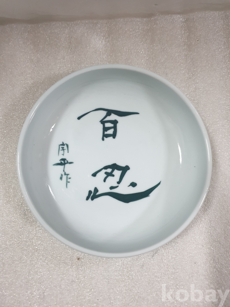 {천원경매}101-0737 백참 글 도자기 접시 (18*-18)