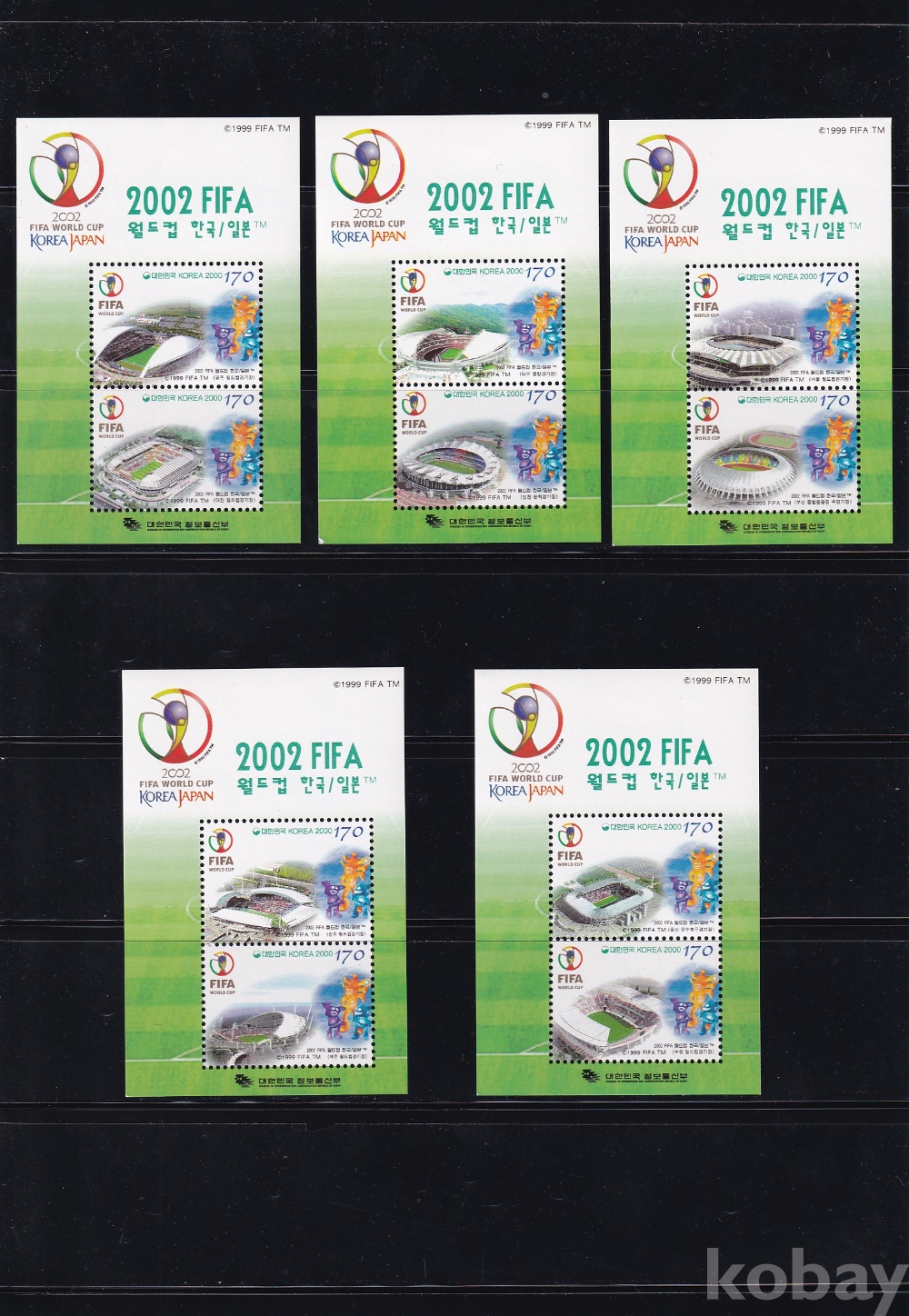 - 미사용 2002년 FIFA월드컵 한국/일본 시트 5종 10장 세트 모음