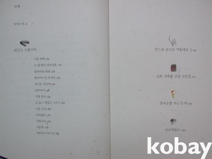 ▒ 2001년 열림원에서 발행한 박완서 지음, <옛날의 사금파리 - 손때 묻은 이야기> 2003년 3쇄본이다. 그림은 이승우가 그렸다고 앞날개에 밝혔다.