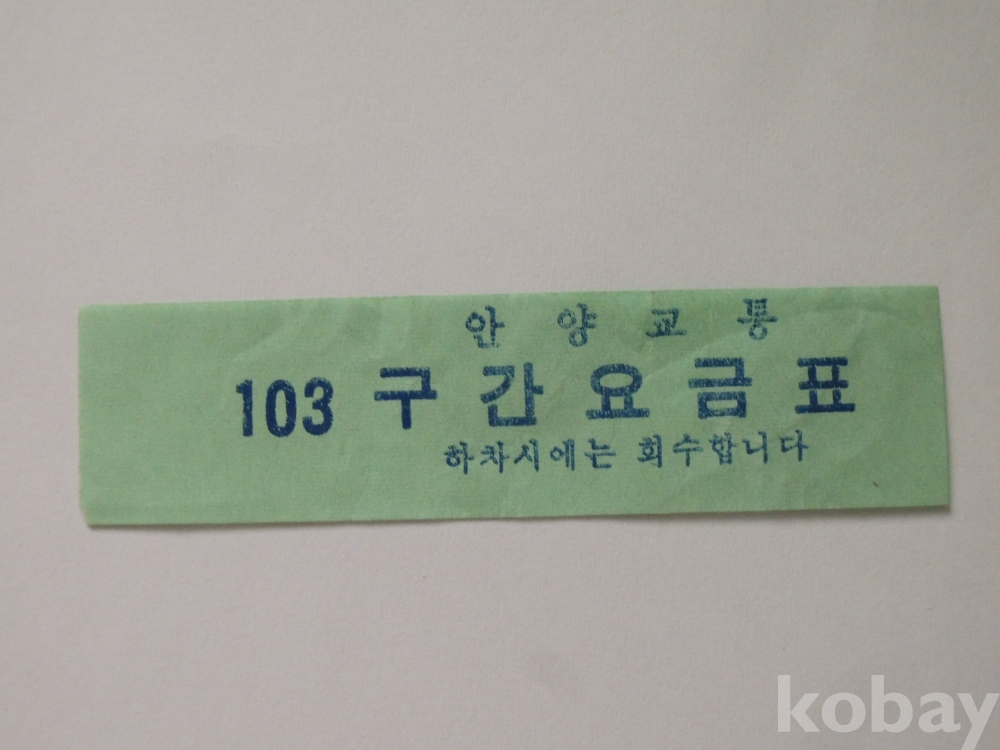 [서울] 안양교통 103 구간요금표 회수권