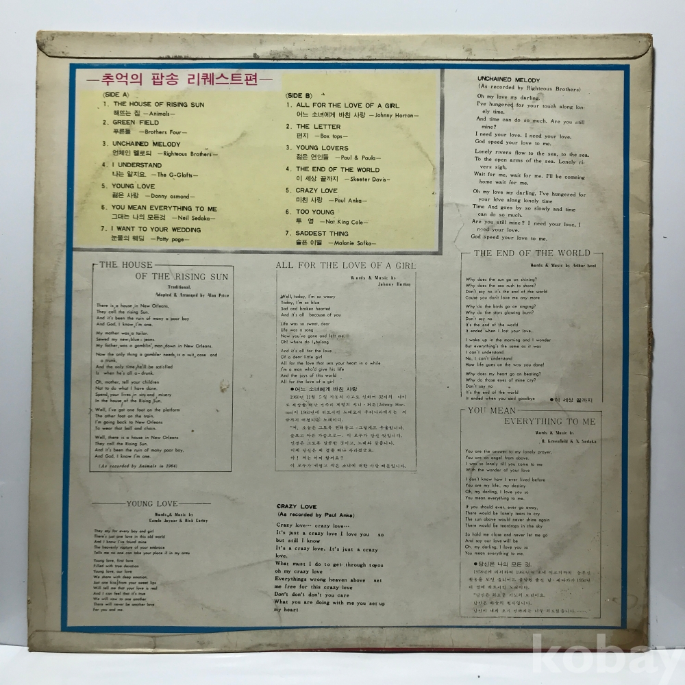 | 자켓상태 | EX : 약간의 마모, 모서리 찢김 존재 | 음반상태 | EX : 재생에 영향 없는 가벼운 기스 존재 | 발매정보 | 알수없음 | 가사지여부 | 무 |