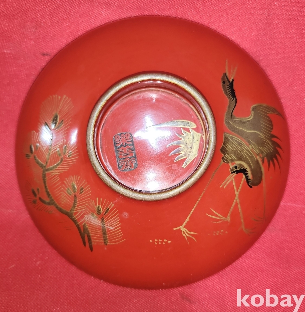 창덕궁(昌德宮)낙선재(樂善齋) 궁중유물로 나무에 옻칠과 금채로 마감된 송학(松鶴)문양 완(碗)입니다,