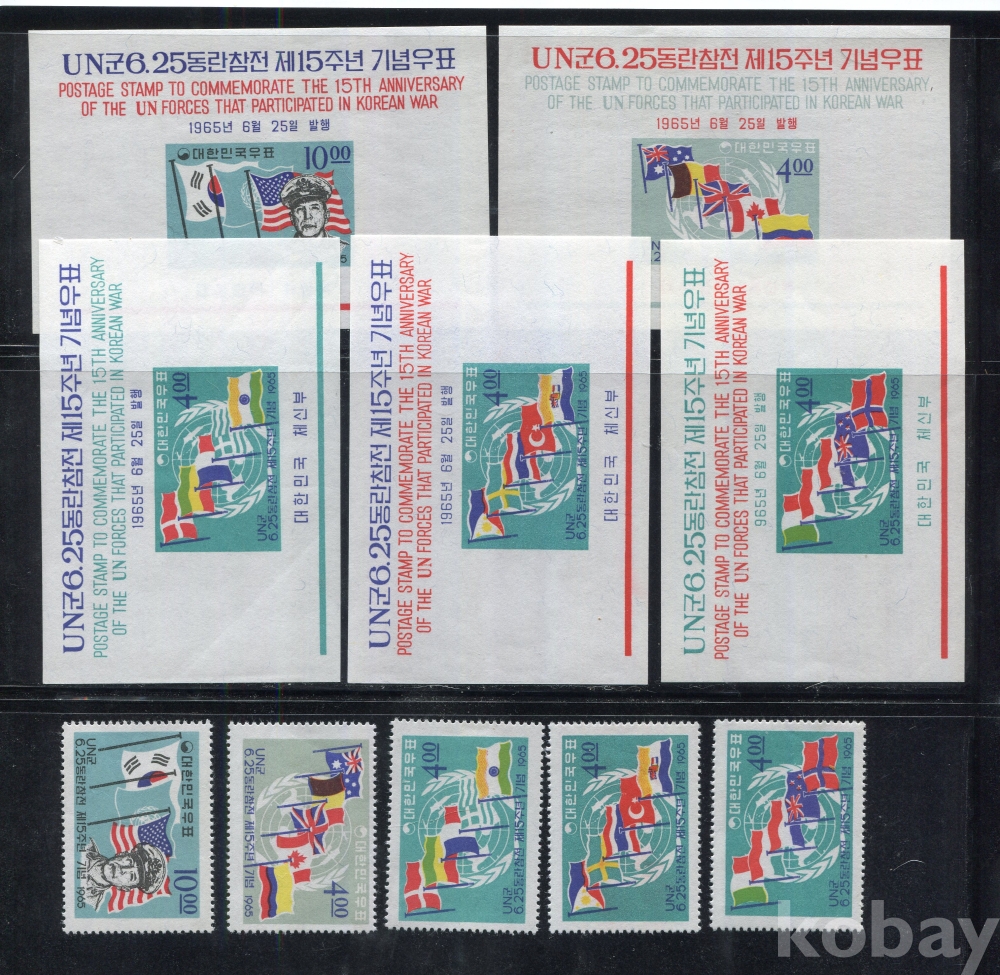 - [시트/우표] 1965년 유엔군 참전 15년 (All MNH : Mint Not Hinged) : 이미지 참조하세요