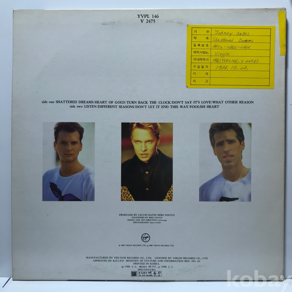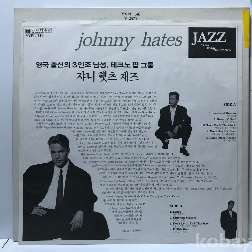 LP 84,010-19 johnny hates JAZZ - TURN BACK THE CLOCK . 자켓 EX 알판 EX+ 88 년제작 국내반