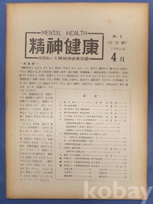 **** 創刊號 [精神健康]. 1961년4월호 사단법인 대한정신건강협회 발행, 32페이지
