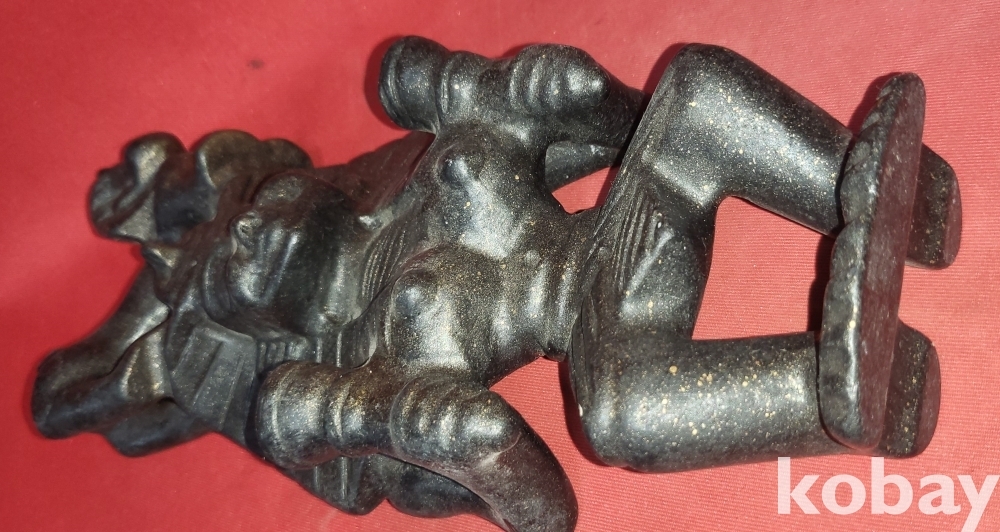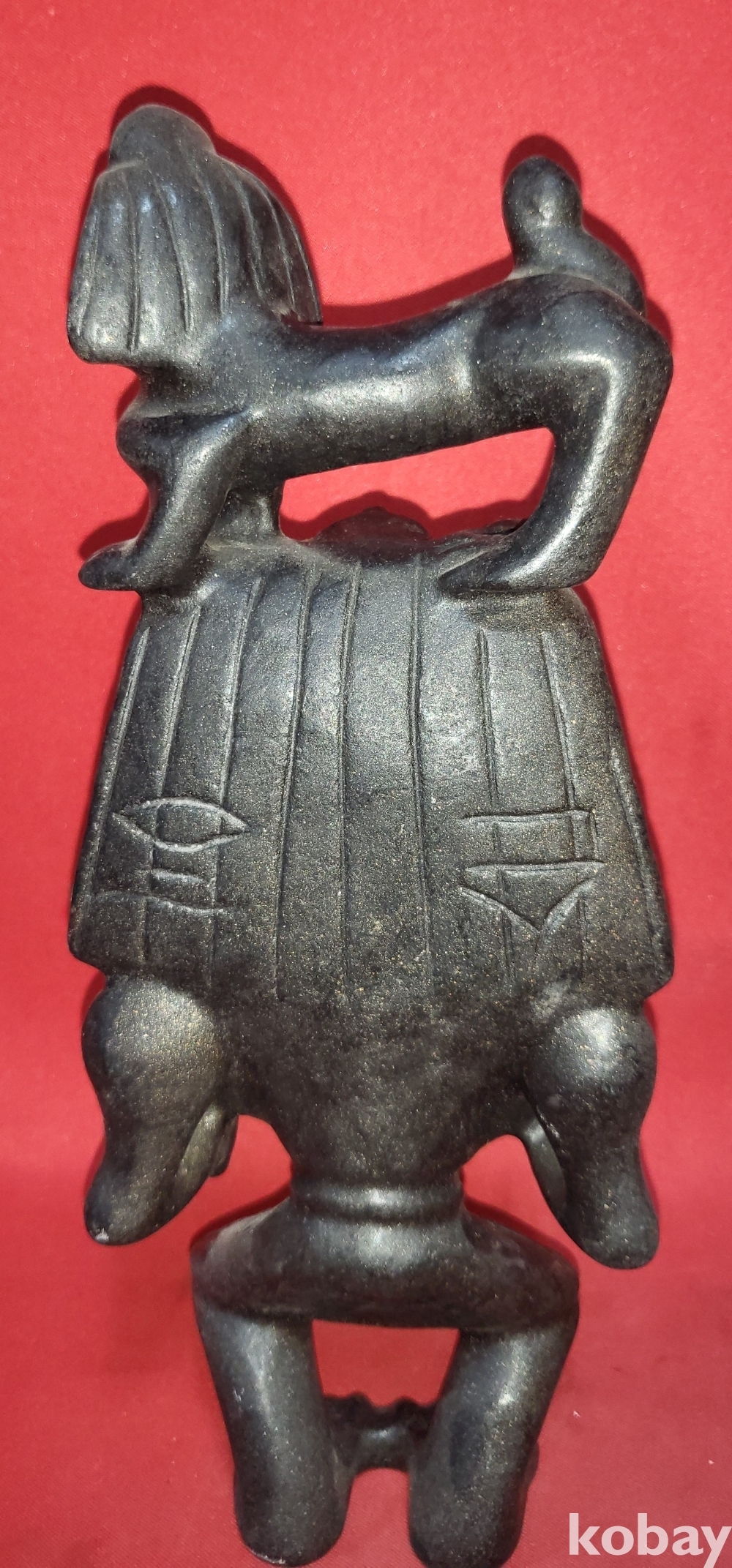 옥중에서 강도가 가장 높은 흑옥(黑玉)으로 만든 사람 위에 올라 탄 동물상으로 크기가 큰 조각품입니다,