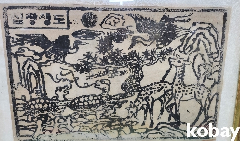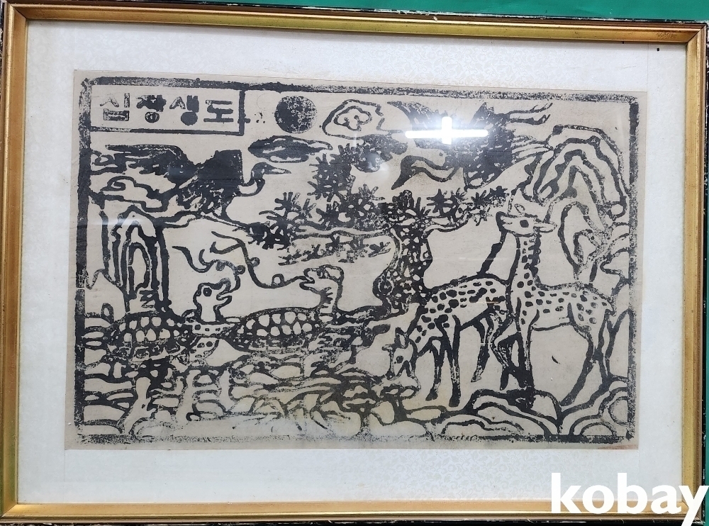 짱짱한 연대 갖춘 십장생도 판화입니다,