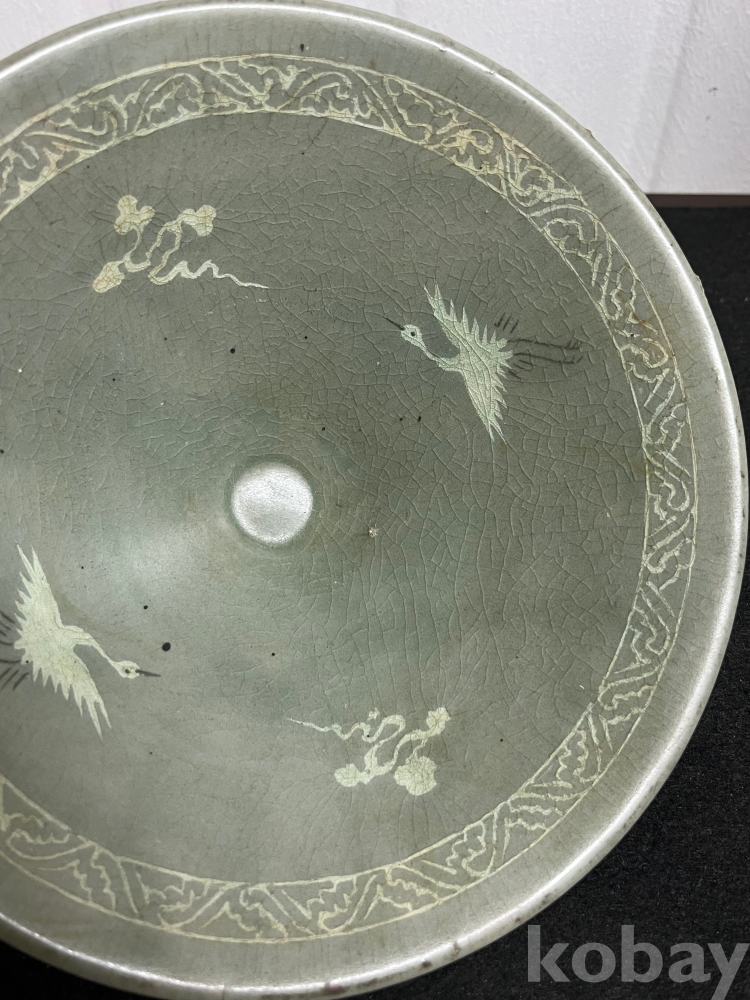 안으로는 상감기법으로 운학문이, 외부로는 아름다운 연화문이 음각되어 있습니다.