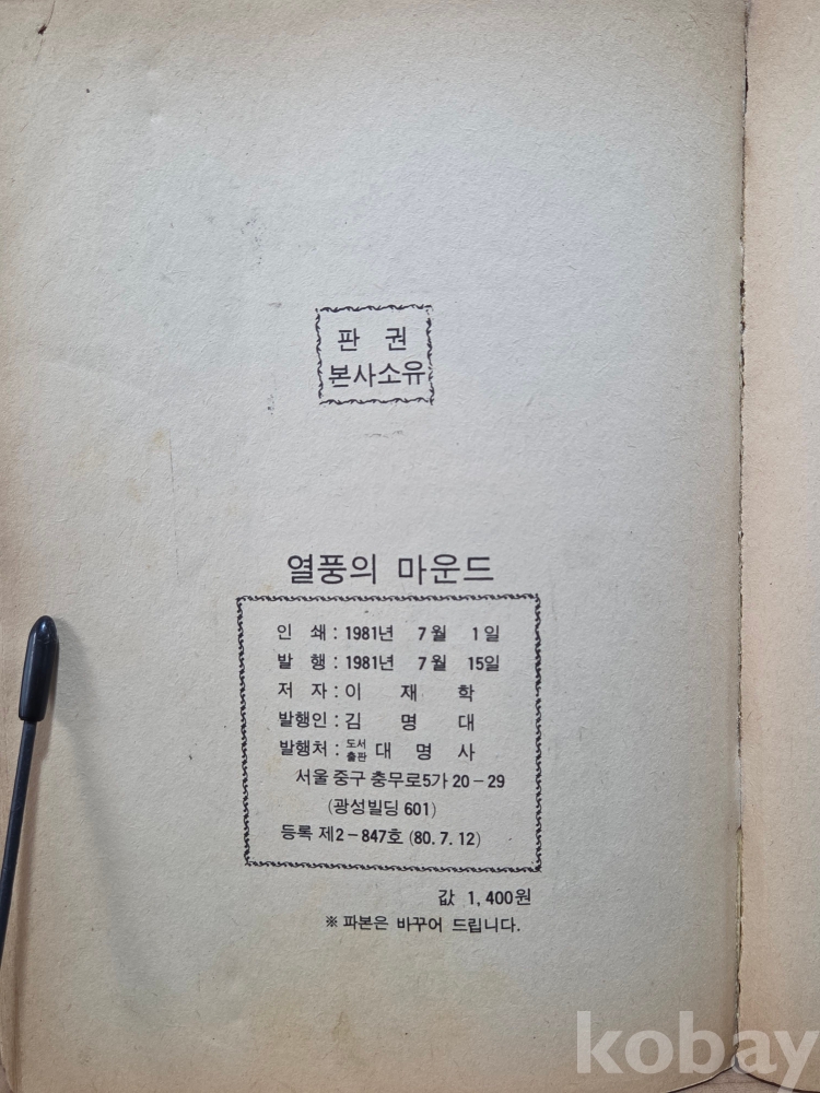 이재학 <열풍의 마운드>. 81년 7월 15일 판입니다.