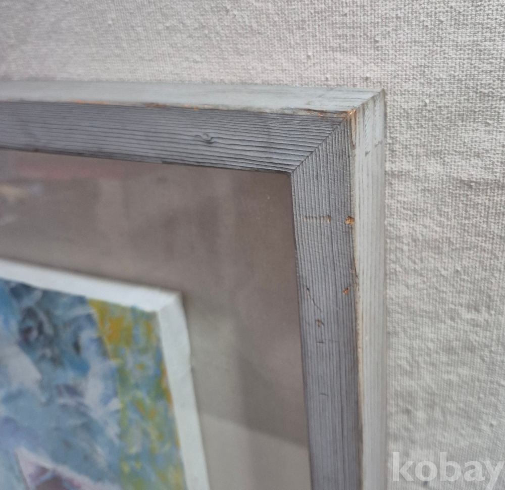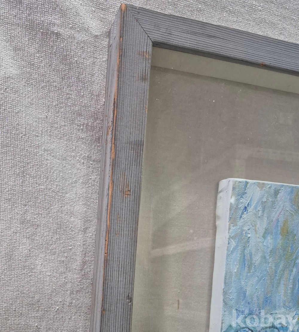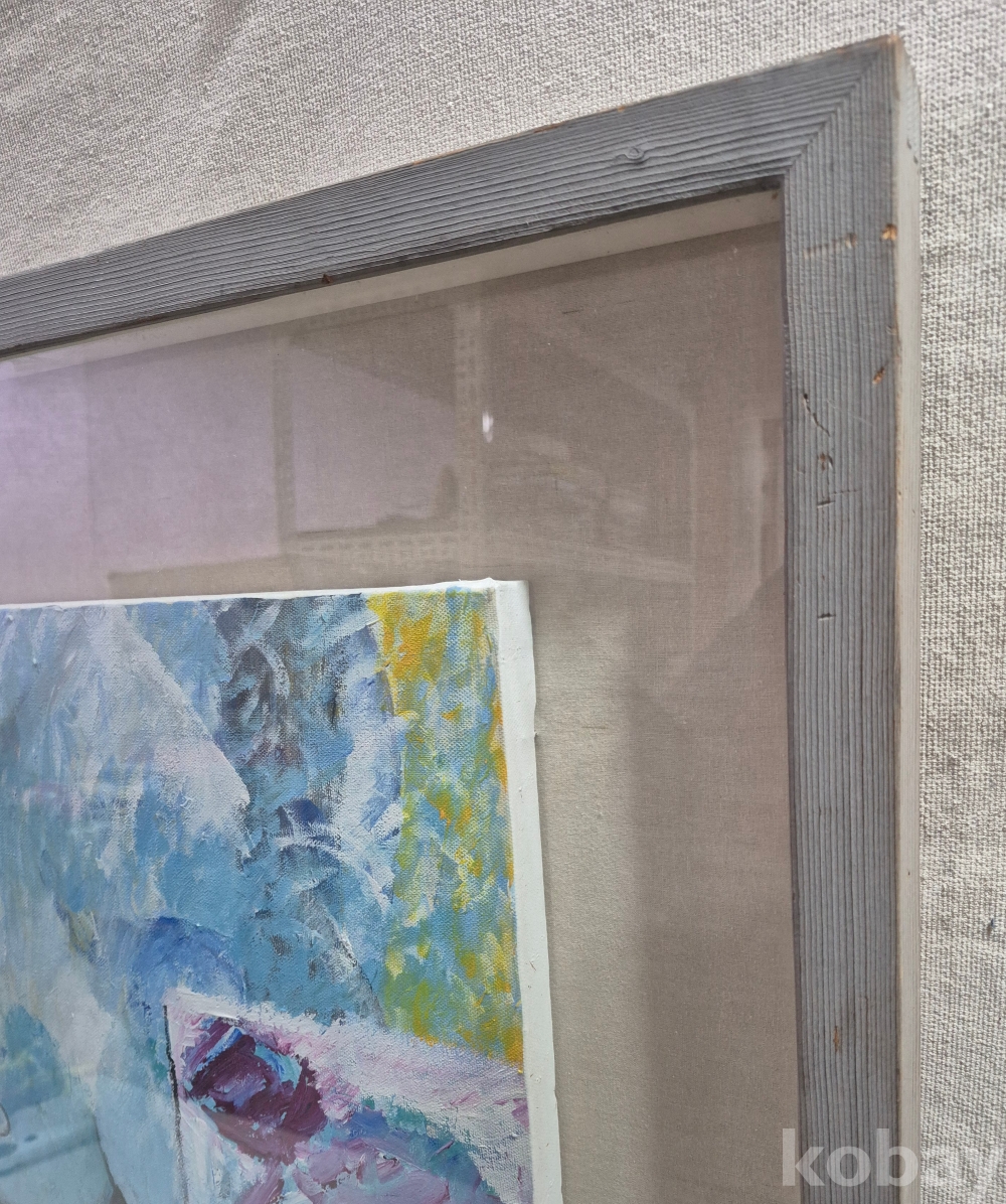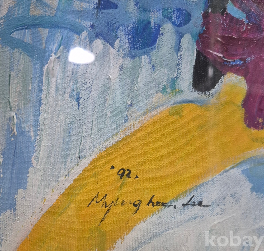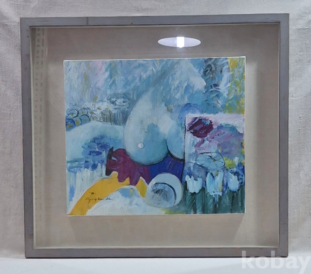 유화 추상화 관액자에 우드 프레임이며 프레임은 사용감있습니다. 92년 작품으로 작가명은 하단에있으며 그림상태는 좋습니다. 전체 77.5×69.7cm
