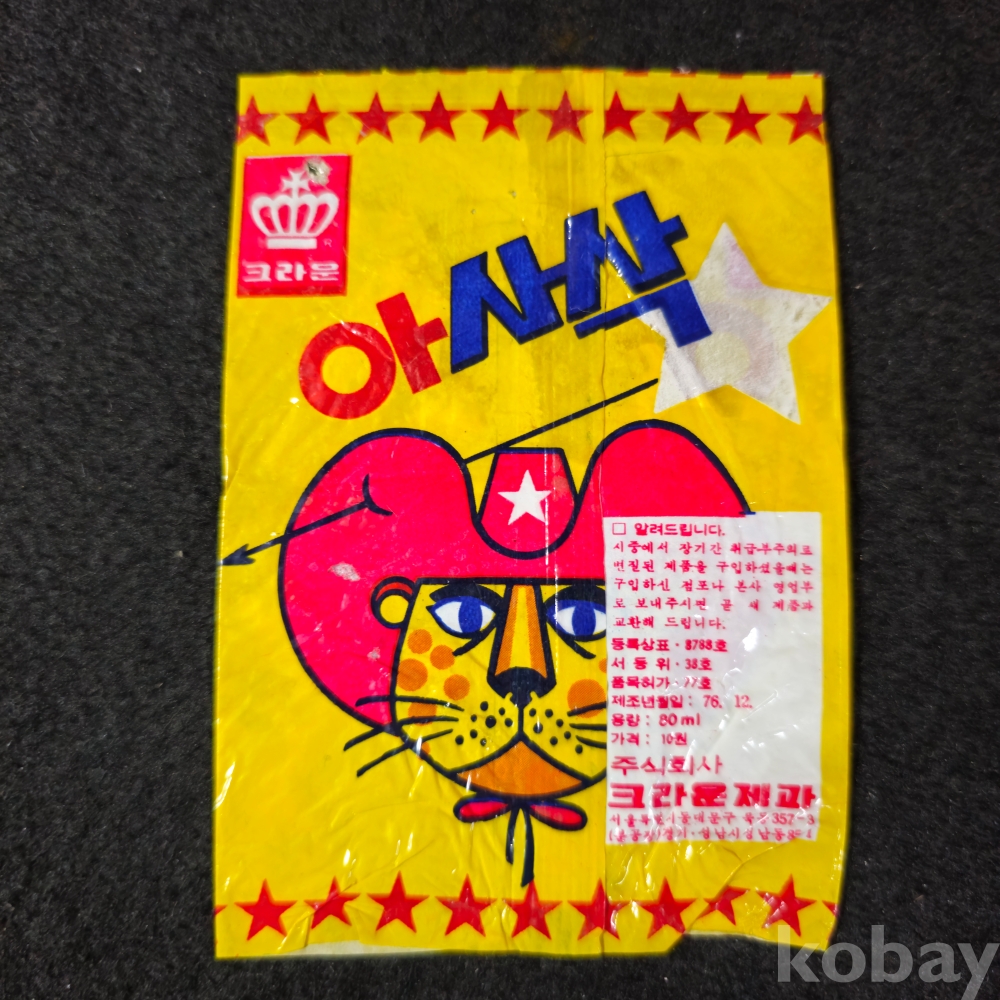 ​​(((근현대자료/과자봉지))) 크라운제과 아사삭 과자 비닐 봉지 / 1976년