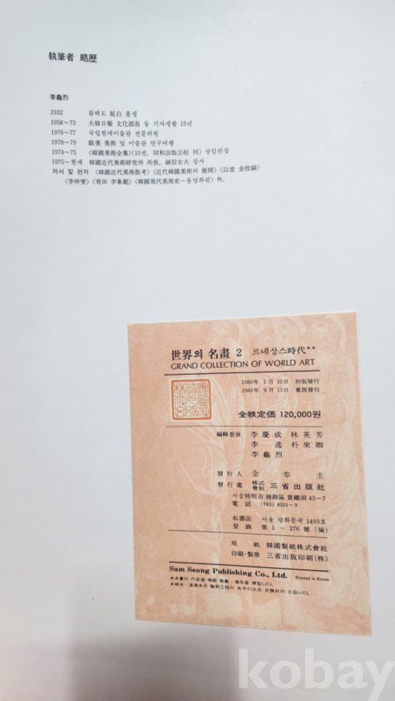 1983년 발행된 세계의 명화 (르네상스 시대) 편으로 크기가 큰 칼러판 화보책입니다,