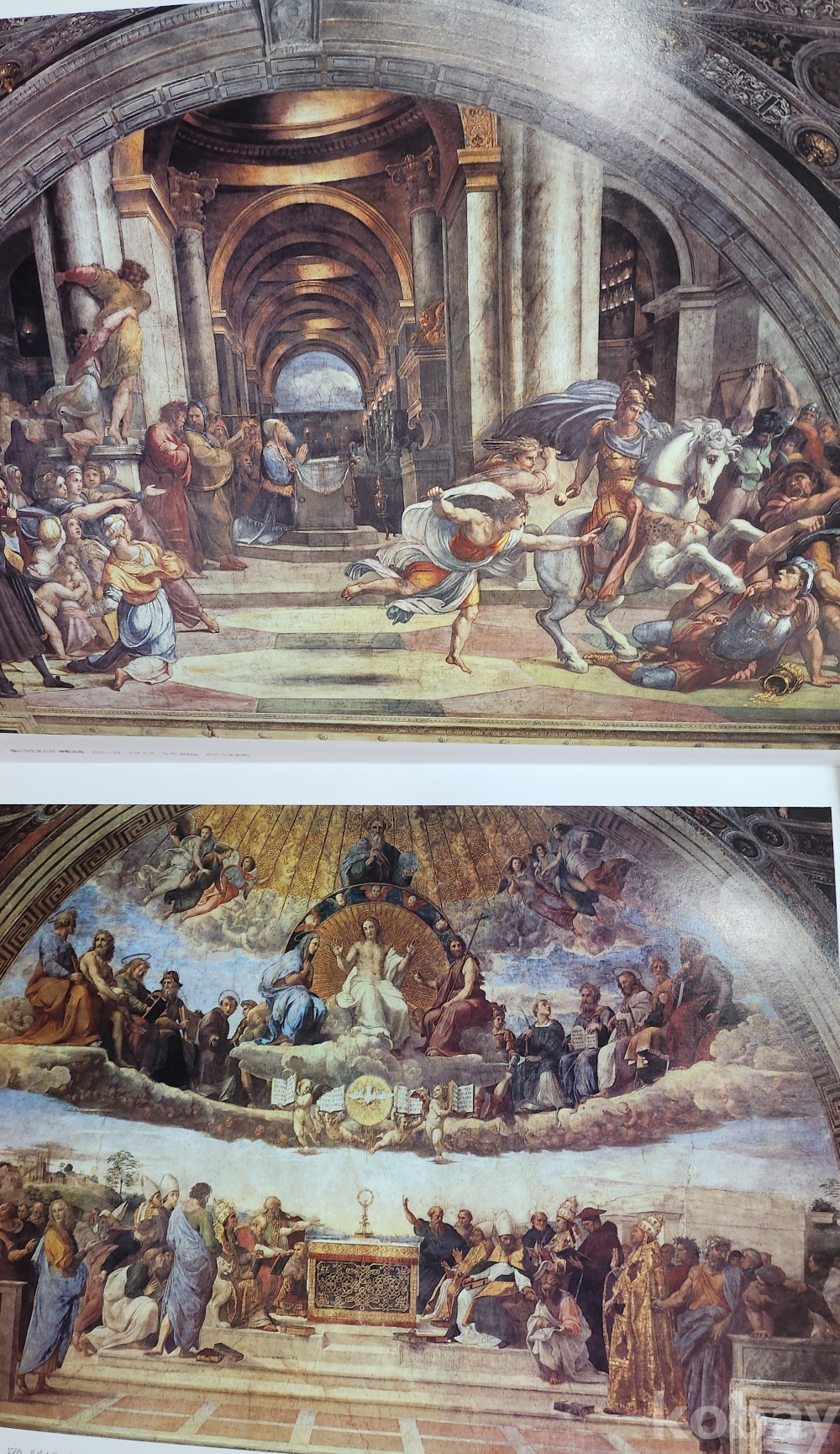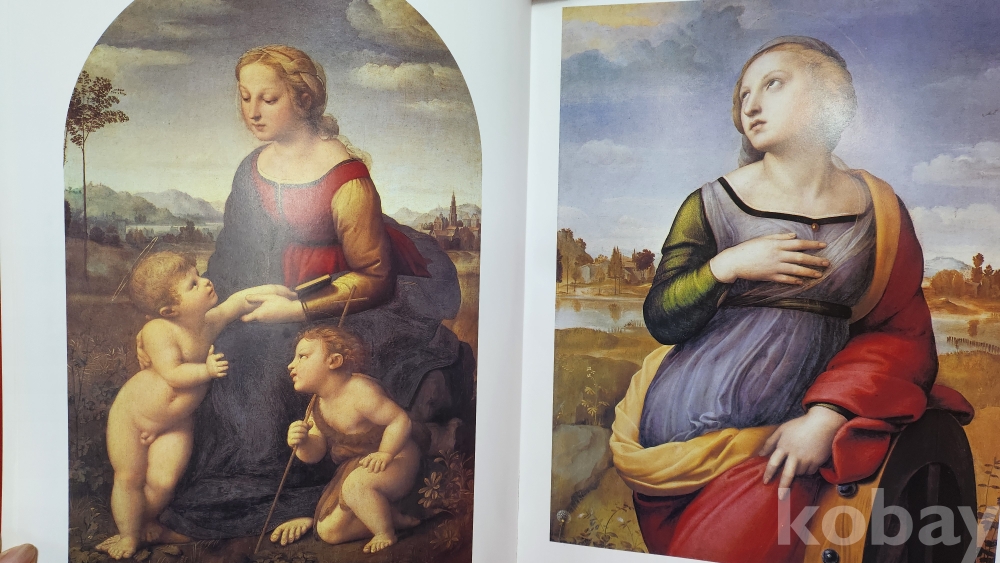 알베르티넬리.지오르지오네.브라만티노.라파엘로.티치아노.베르나드리노루이니.세바스티아노.안드레아델샤르토.코레지오.얀반아이크.반데르.멤링크.다비트.피터부리켈.뒤러.쿠라나하.알트도르퍼.홀바인.브론치노.살비아티.틴토레토.베로네제.발켄보르흐.폰트르모.파르미지아니노 등 많은 성화로 가득채운 칼러판 화보책입니다,