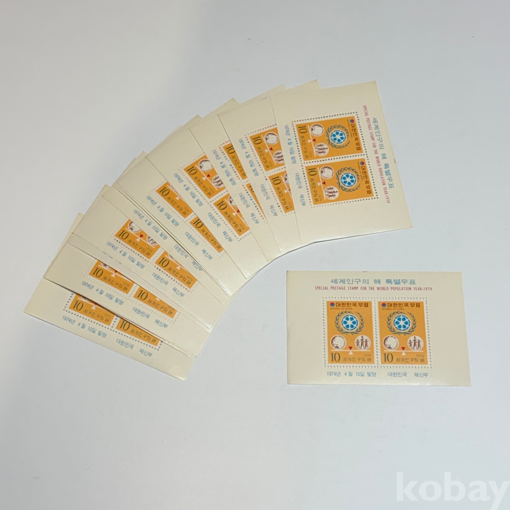 1974년 세계인구의 해 특별우표 시트 (15매)