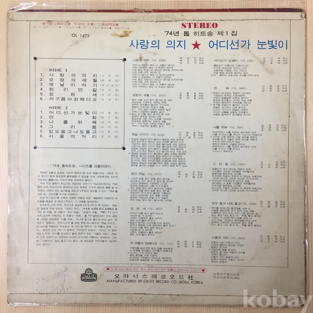 ⊙ 1974년 / 오아시스레코드 - OL 1475