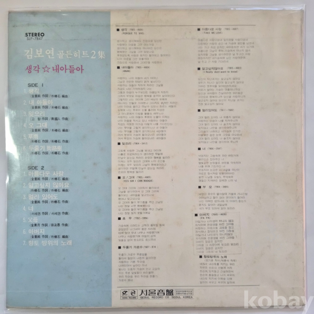 [추억의 희귀 LP 기획전] (김보연) 골든히트 2집 / 생각 ☆ 내 아들아
