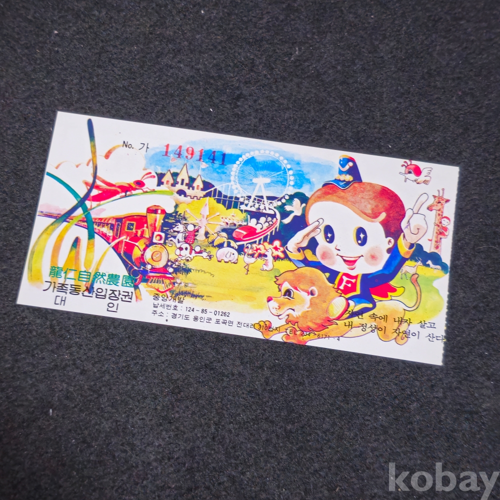 (((근현대사자료))) 1980년대 龍仁 自然農園 가족동산 (대인) 입장권 (해태 러브 러브)