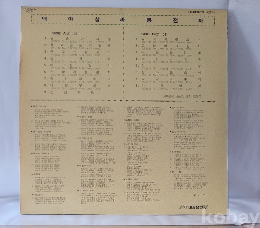 * 커버 : EX / 음반 : EX+ / 태광 1984 / 가사지 없음