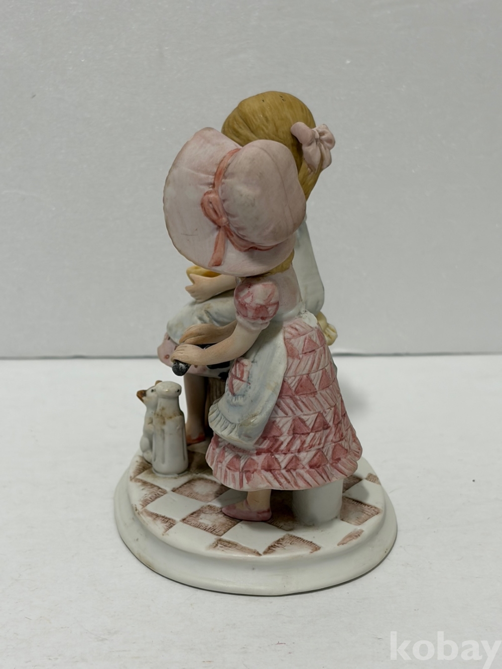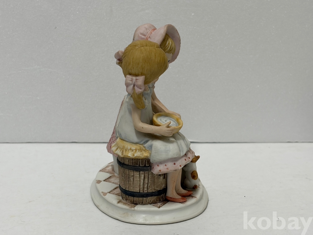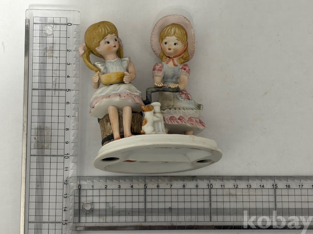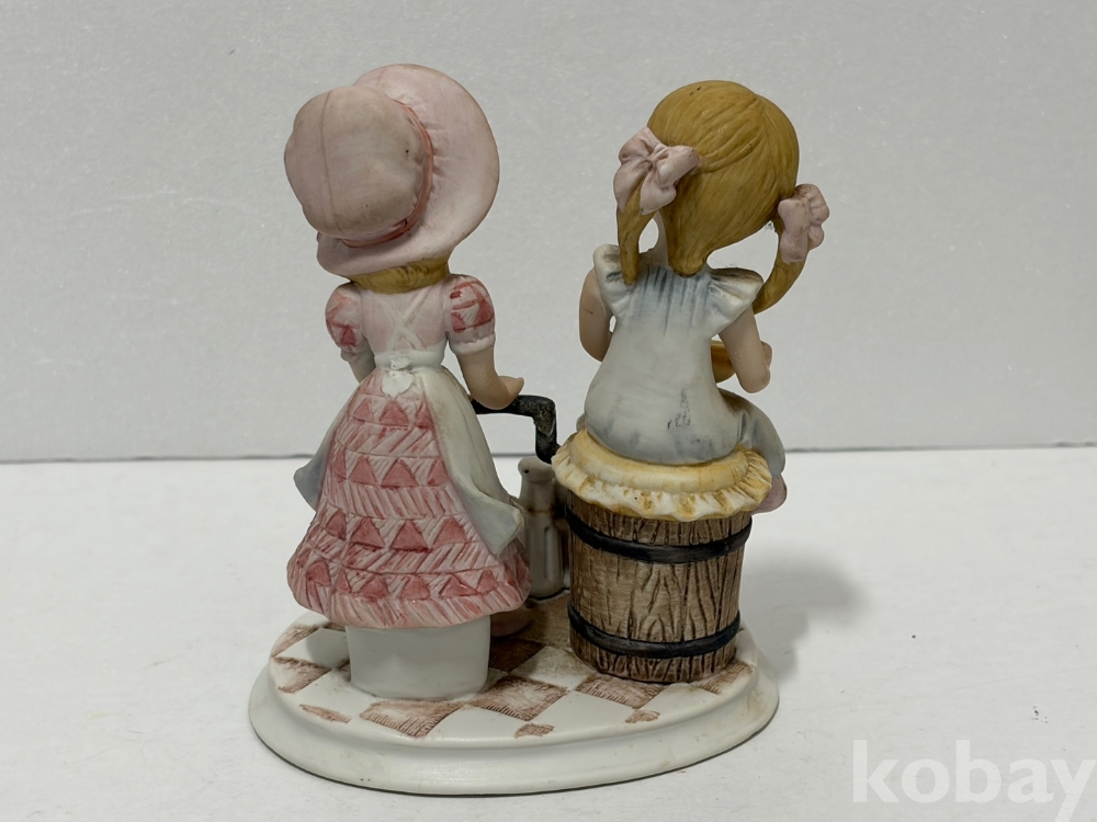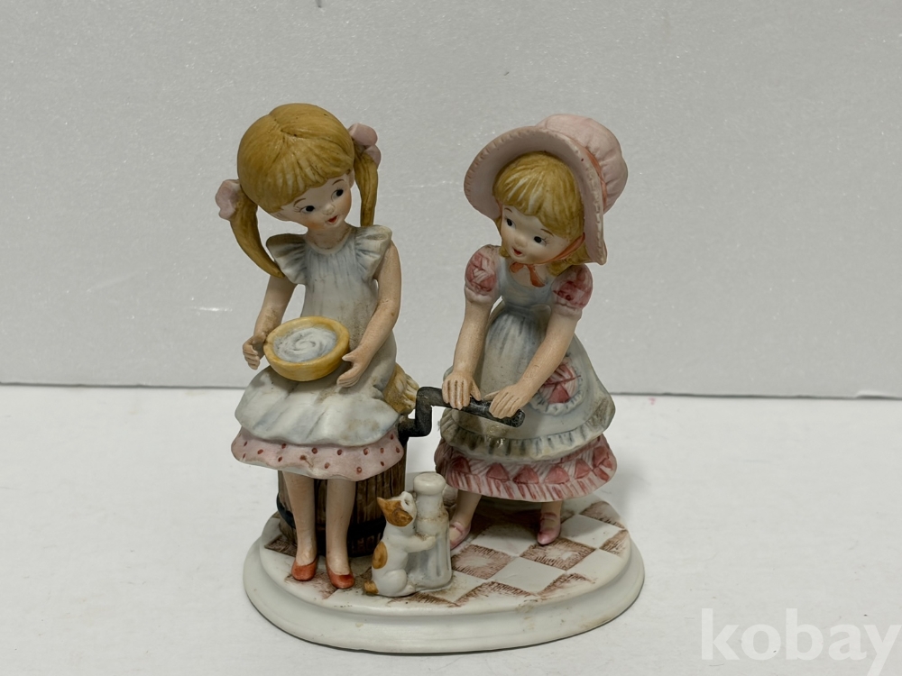 버터를 만드는 두 소녀 도자기 인형입니다.