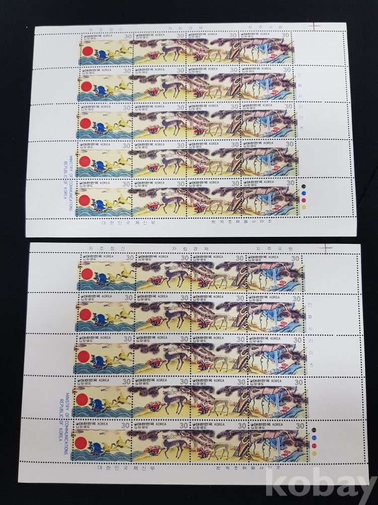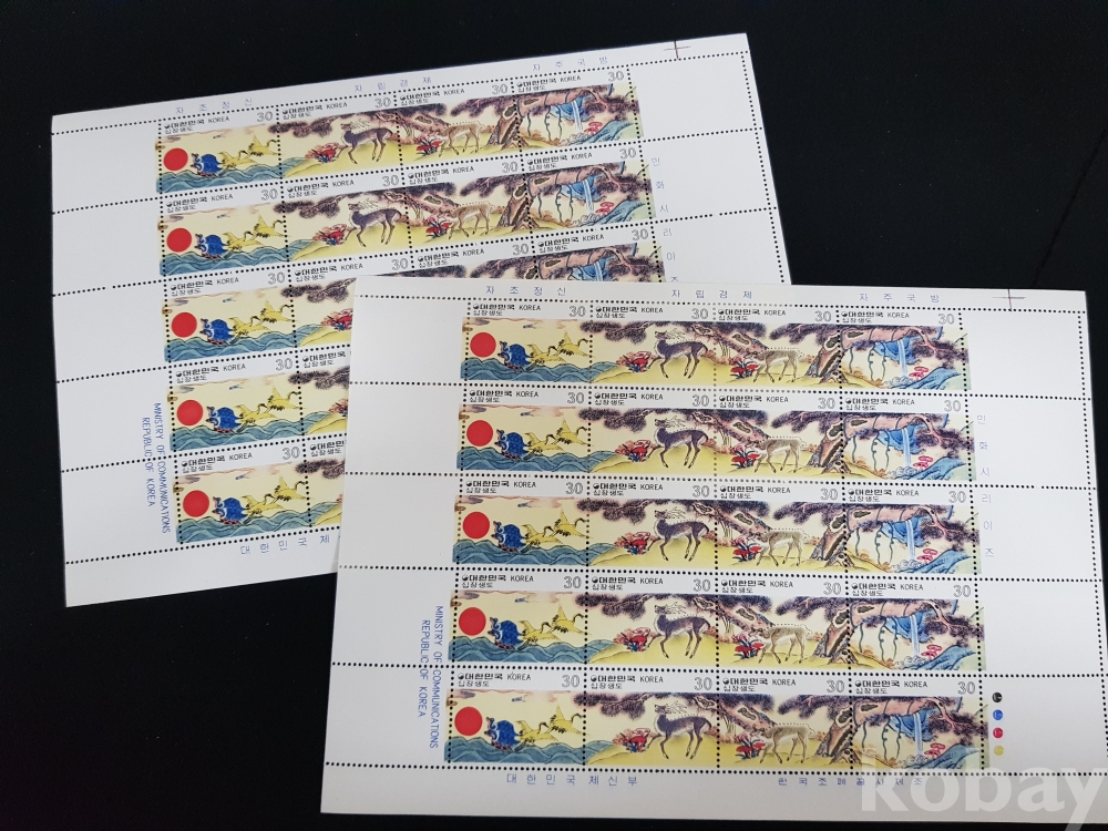 - 미사용 1980년 민화 시리즈 제 5집 십장생도 전지 2매 일괄