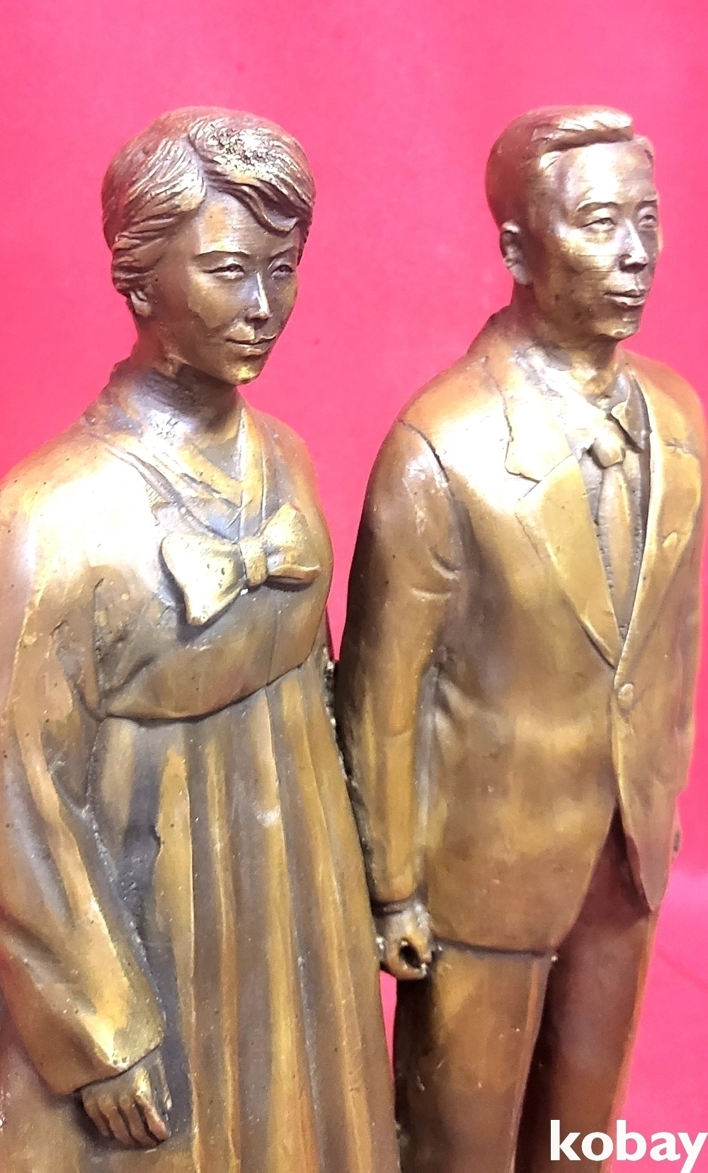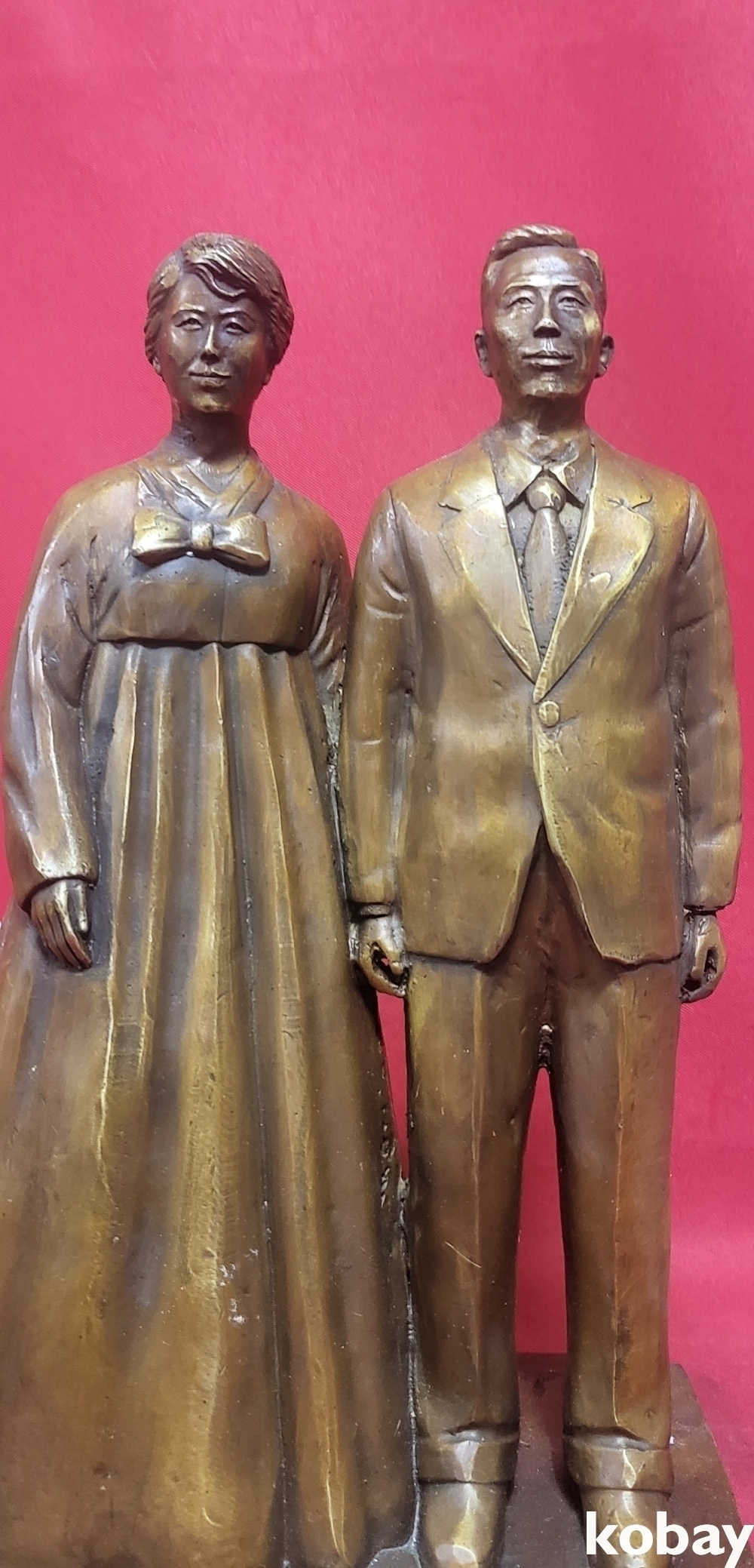 적동( (赤銅)으로 완성된 전 대통령 부부상 조각품입니다,