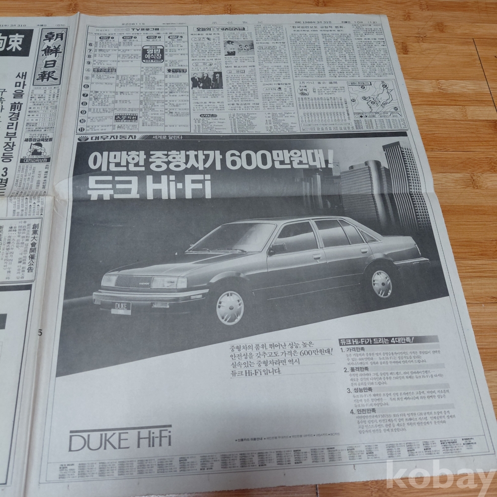 대우 듀크 중형세단 광고 조선일보 88년3월31일 올려드립니다