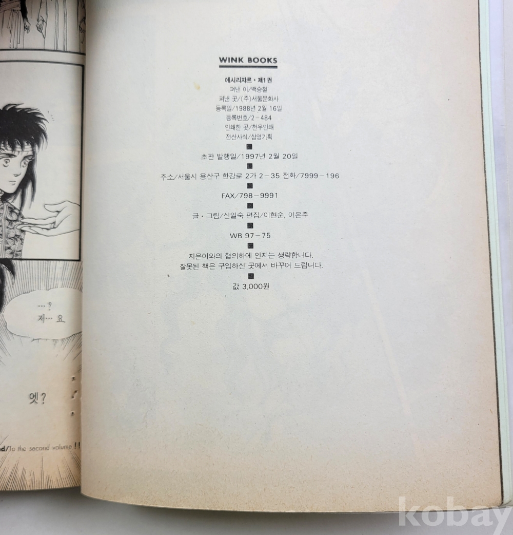 물 품 명 | 신일숙 / 에시리쟈르 (1~3)완결 총3권 / 1997년 초판 / 서울문화사 |
