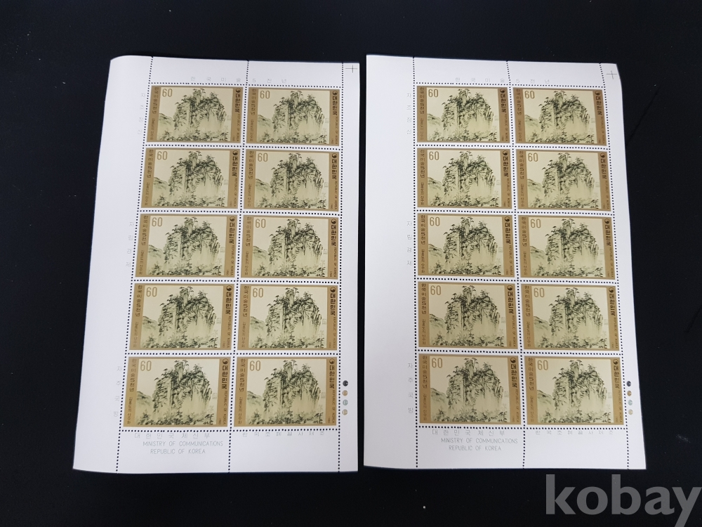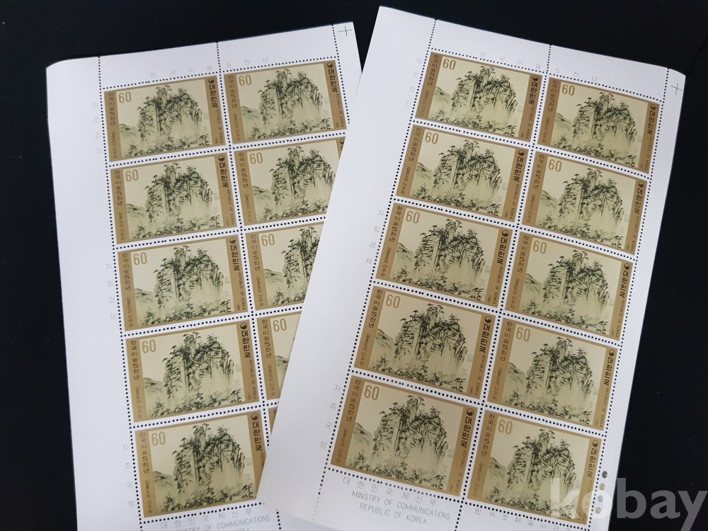 - 미사용 1979년 한국미술 5000년 제 5차 김홍도의 산수화 전지 2매 일괄