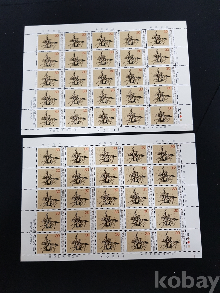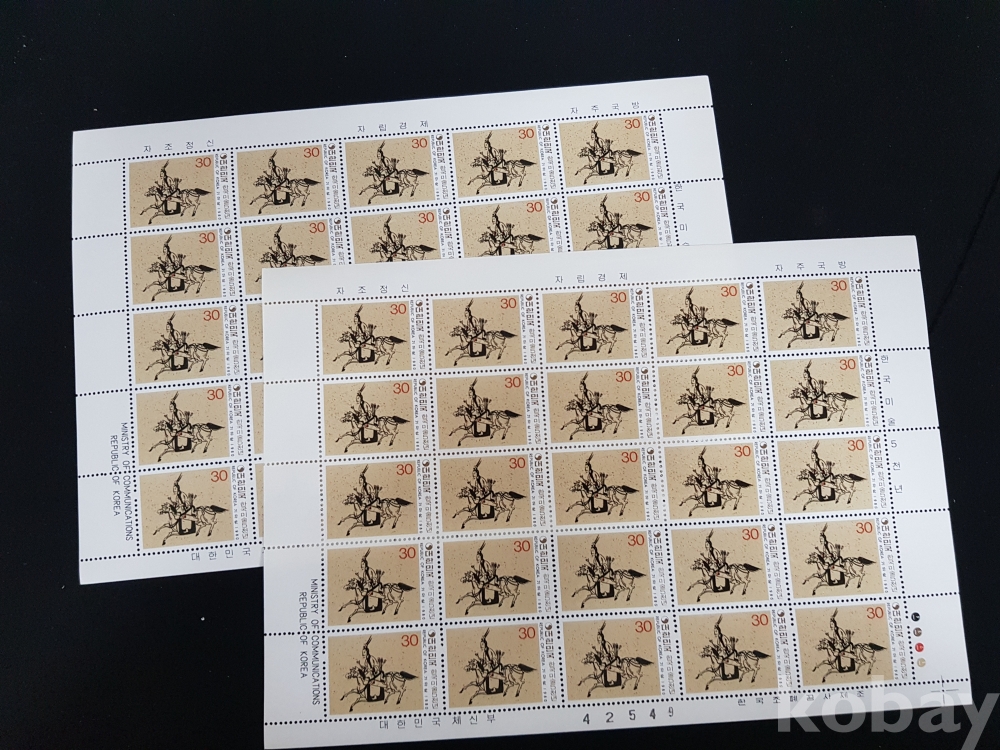 - 미사용 1980년 한국미술 5000년 제 7차 기마상 전지 2매 일괄