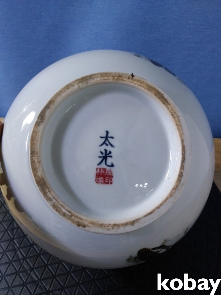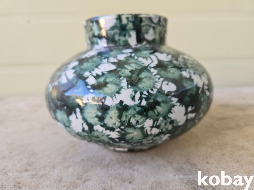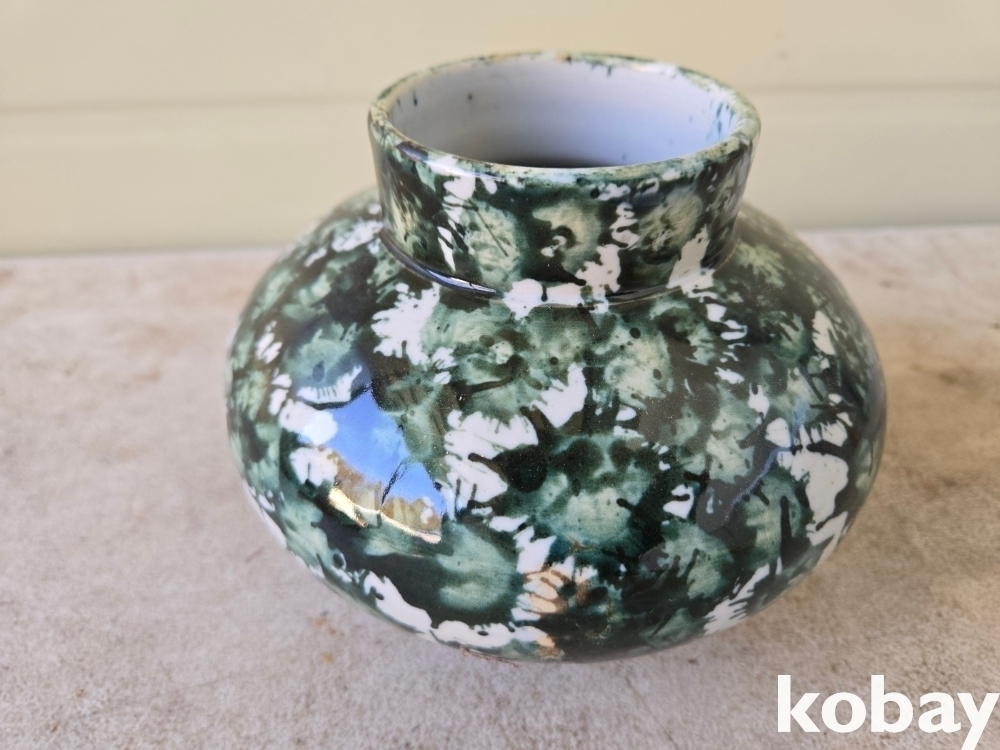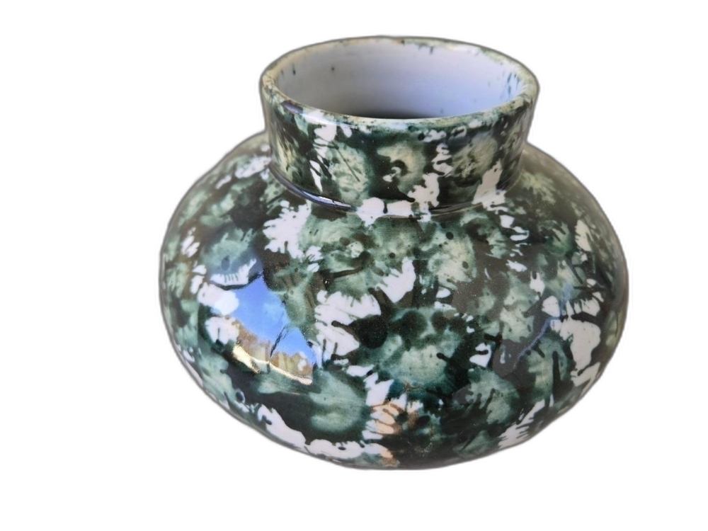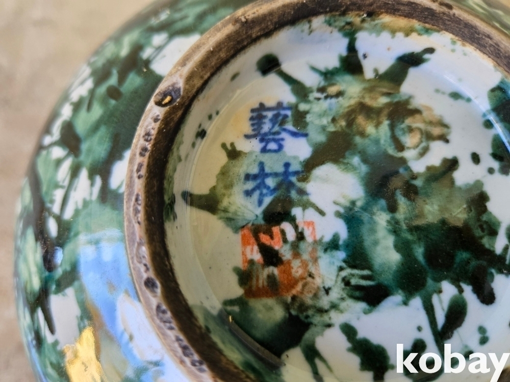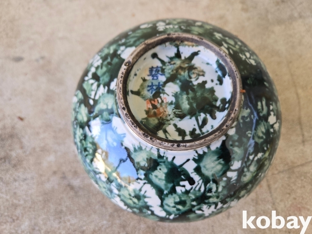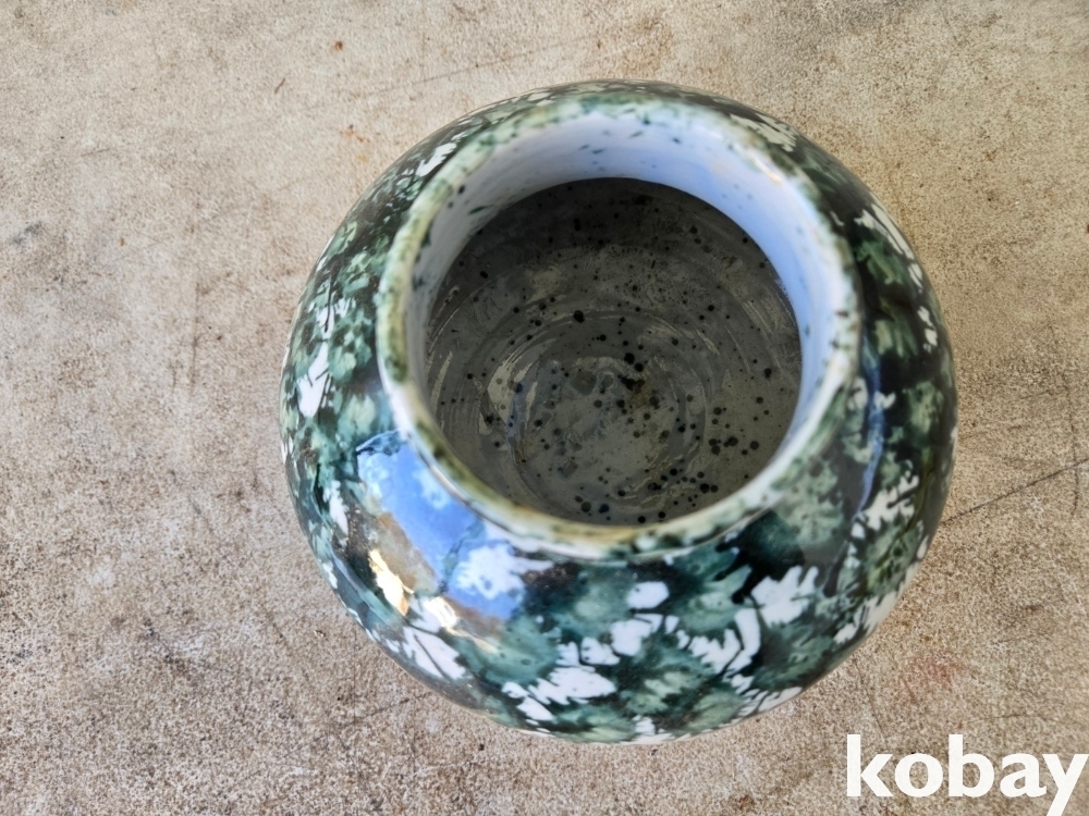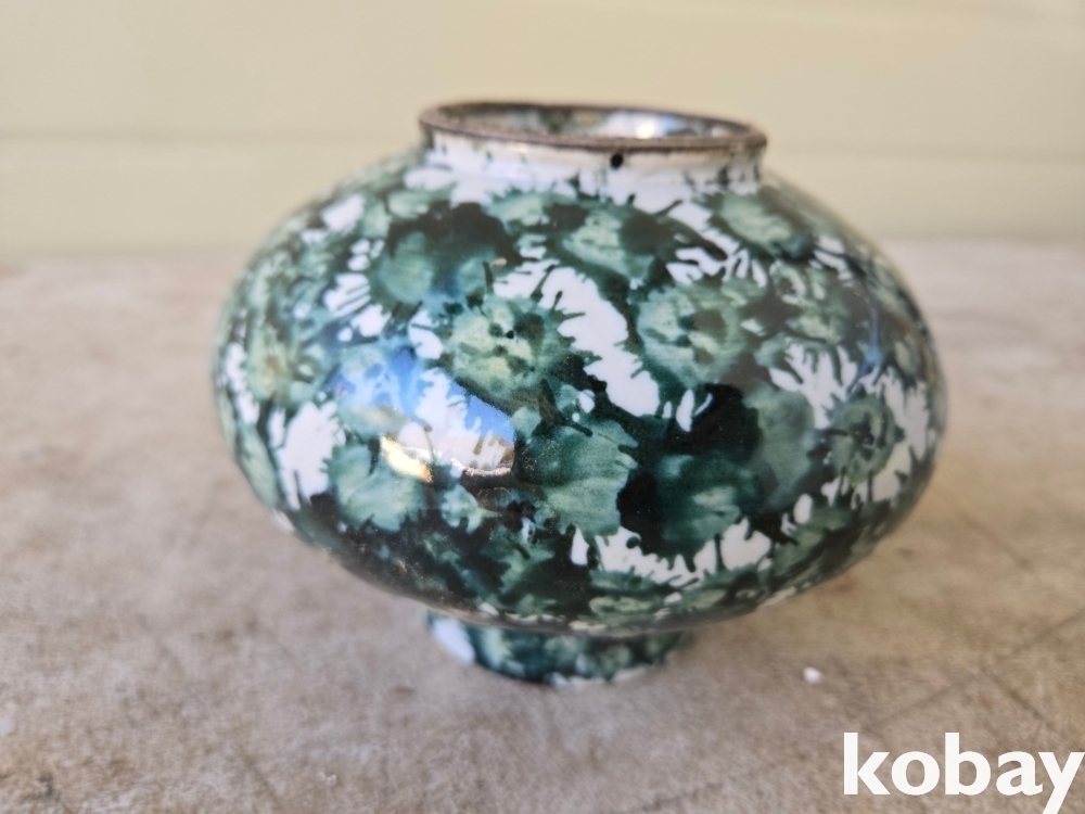 물감 퍼짐 문양으로 멋을 낸 목선이 높은 도자기 입니다.
