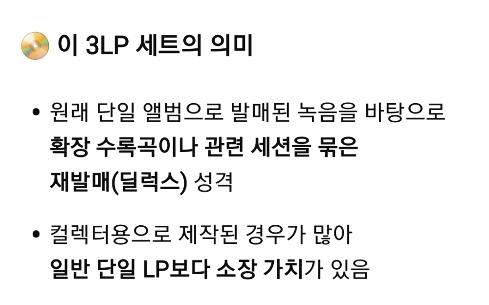 | 자켓상태 | NM : 개봉했으나 미사용, 자켓 손상 없음 | 음반상태 | NM : 개봉했으나 미사용급, 스크래치 없음 | 발매정보 | 초반 | 가사지여부 | 무 |