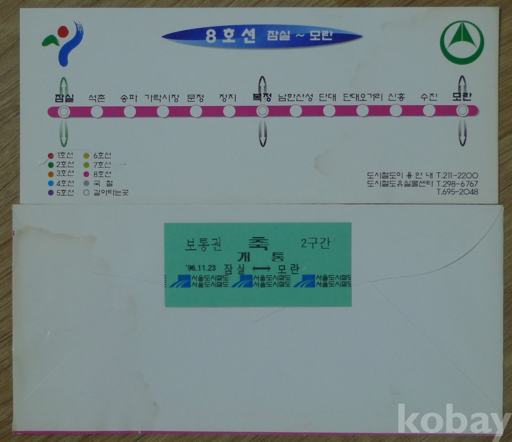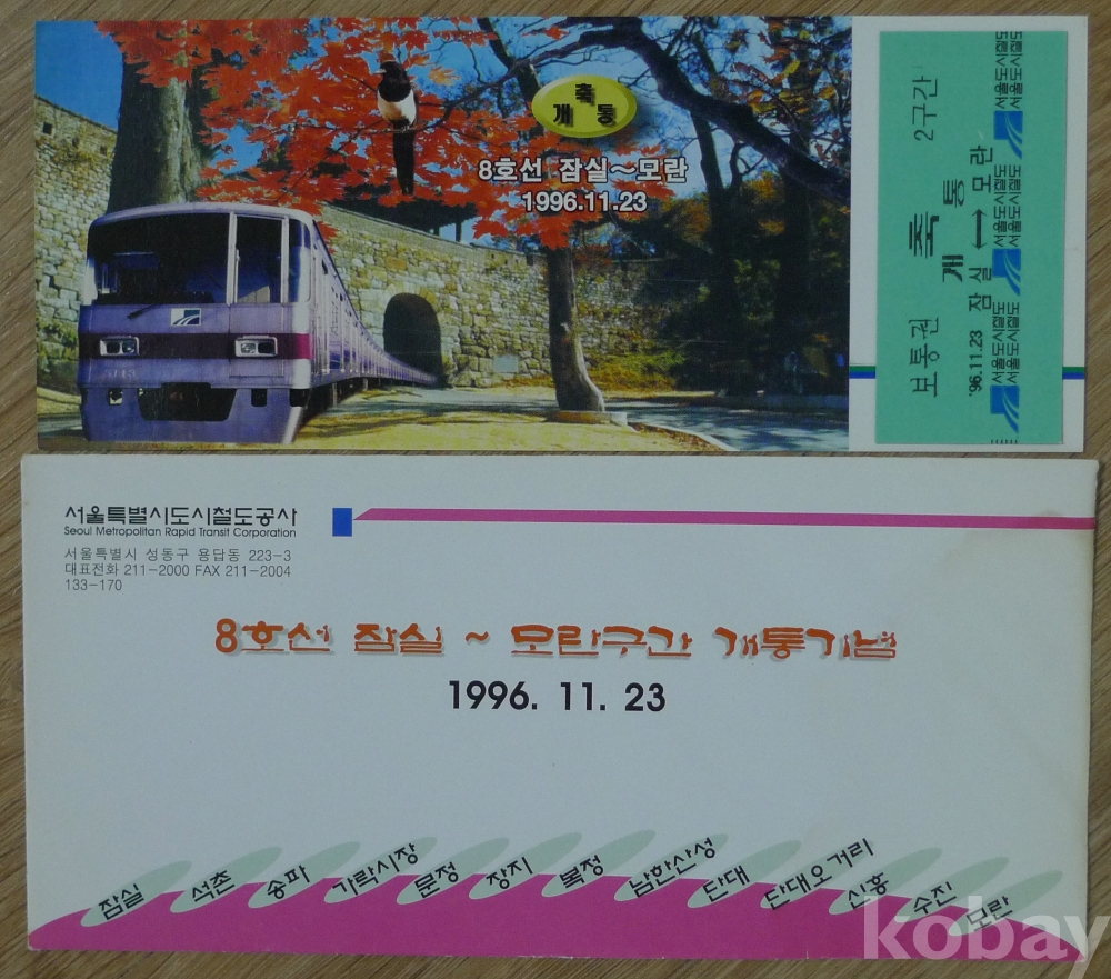1996년 지하철 8호선 잠실 - 모란 구간 개통 기념 승차권