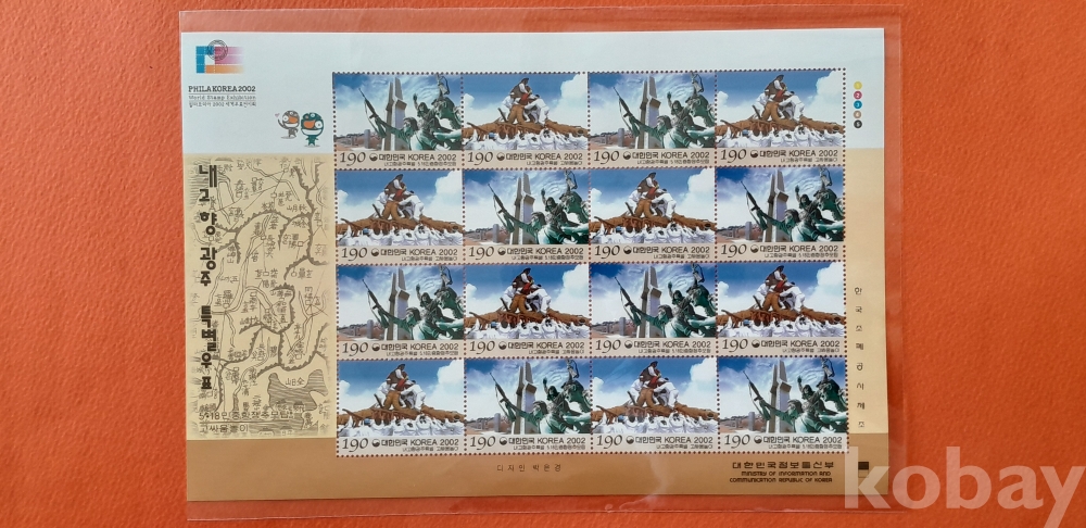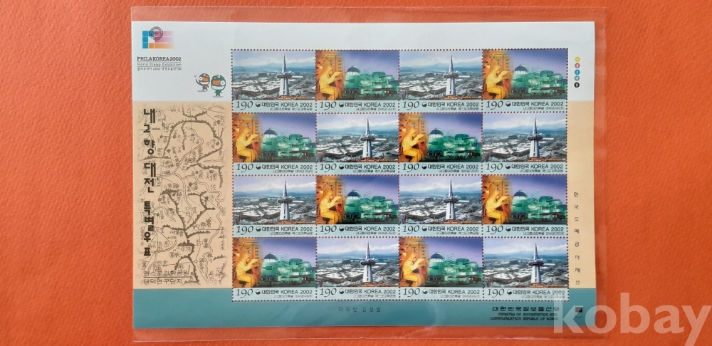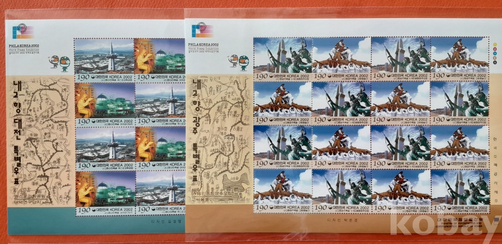 내고향 특별 우표(대전, 광주) 16매 전지 2종 입니다.