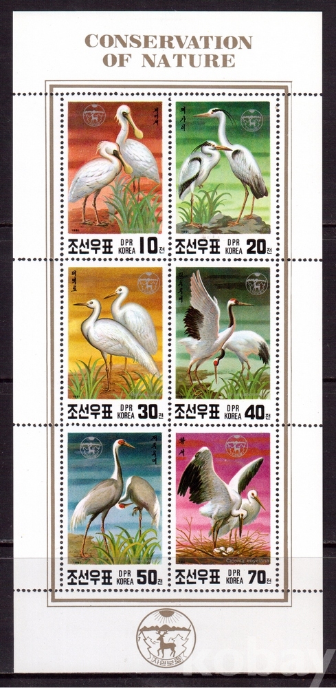 (조류) 북한 1991.2.5 새(자연보호) sheetlet of 6 MNH