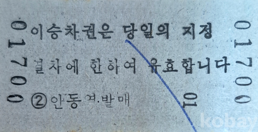 통일호 승차권 안동-단촌 특정구간 노소입니다.