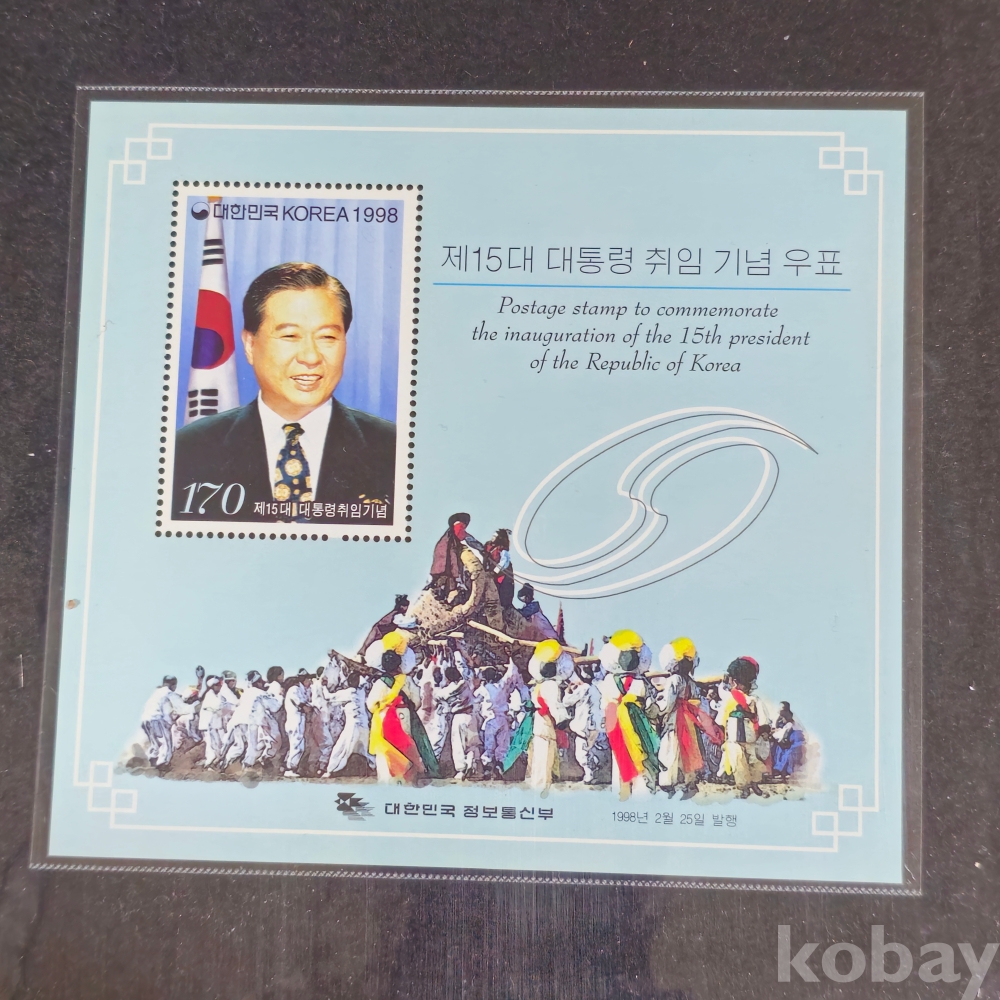 (천원경매) (((대통령자료/우표/쉬트))) 1998년 제15대 김대중 대통령 취임기념 쉬트 (미사용)