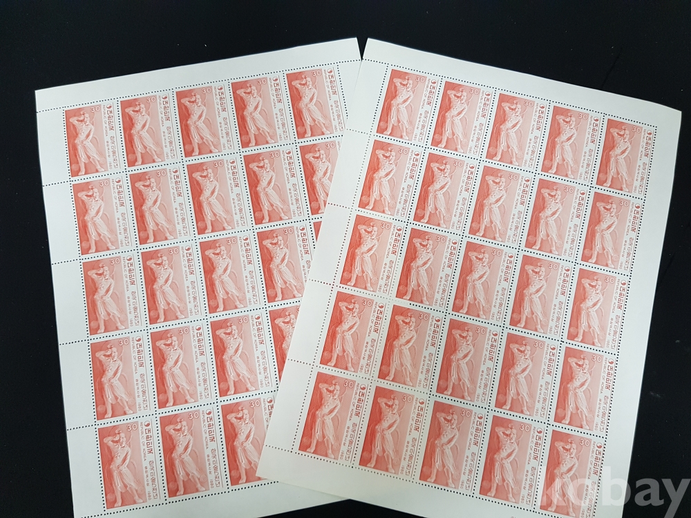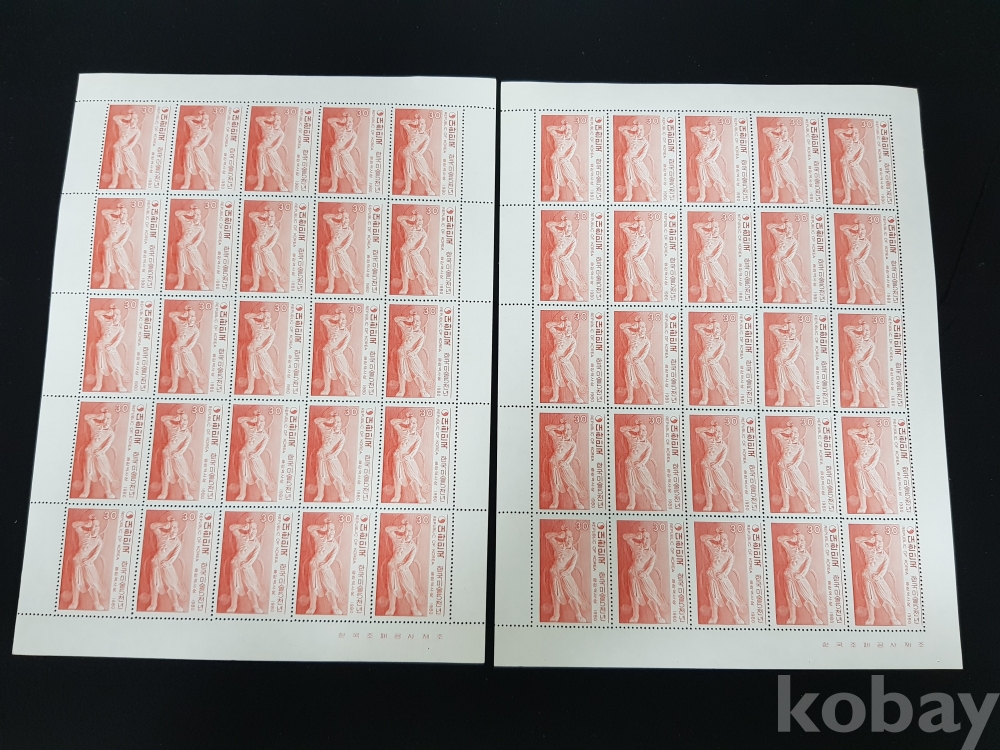 - 미사용 1980년 한국미술 5000년 제 9차 금강역사상(적색) 전지 2매 일괄