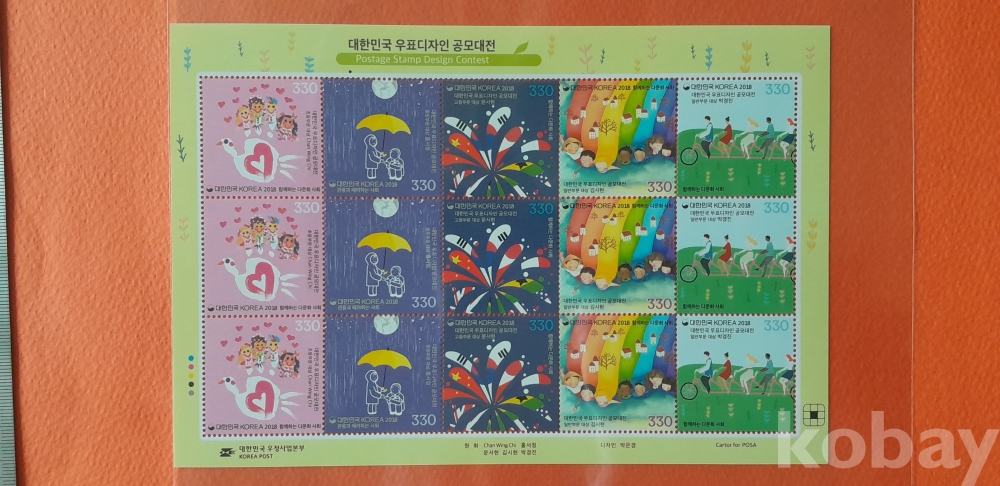 2018 대한민국 우표디자인 공모대전 15매 전지 입니다.