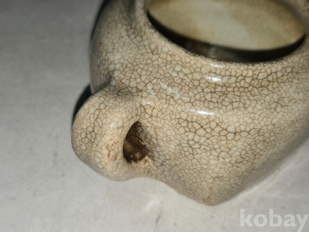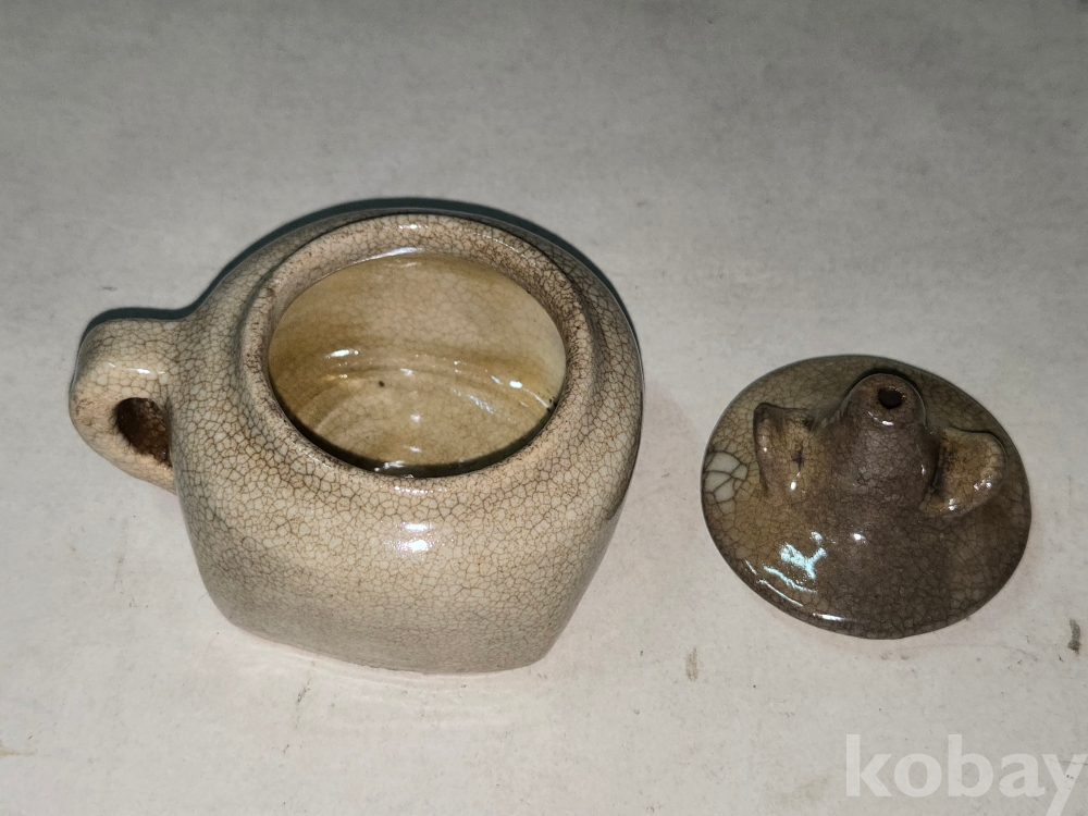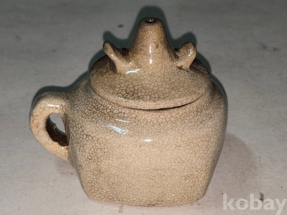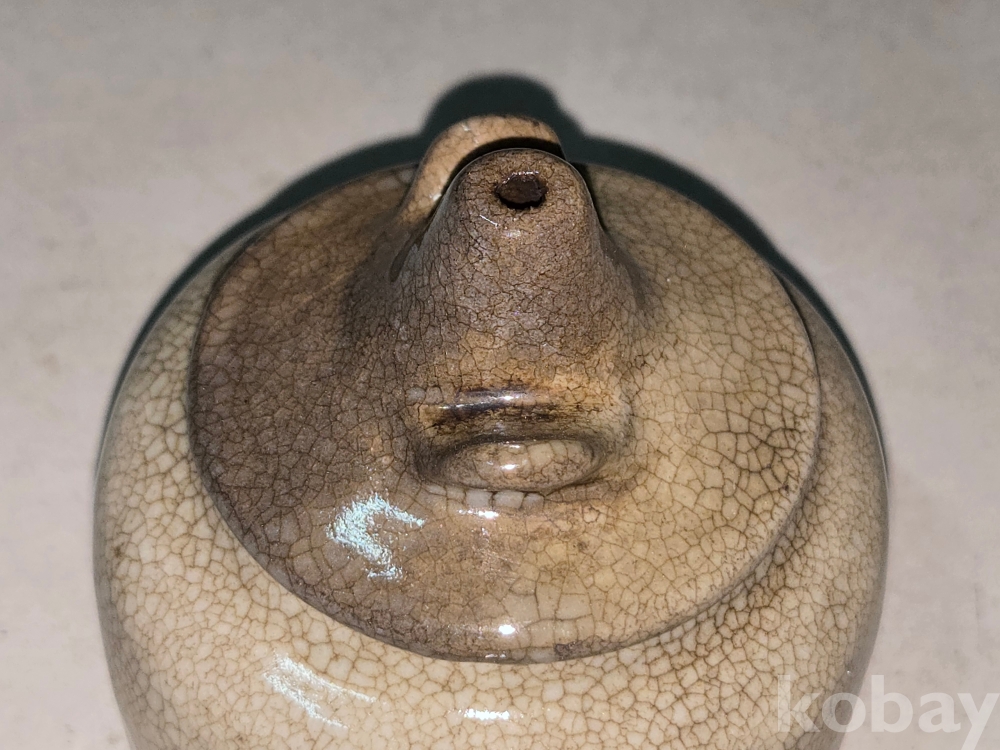 잔잔한 빙렬의 장작가마 백자도자기 등잔(호롱) / 심지 뚜껑 형태가 독특한 백자 도자기 등잔