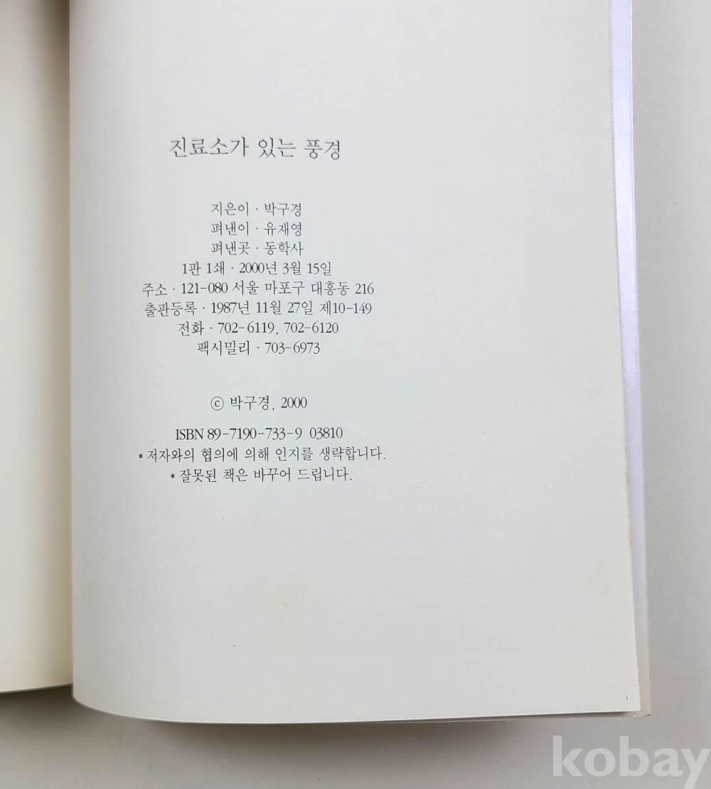 물 품 명 | 박구경 / 진료소가 있는 풍경 / 2000년 초판 / 동학사 |
