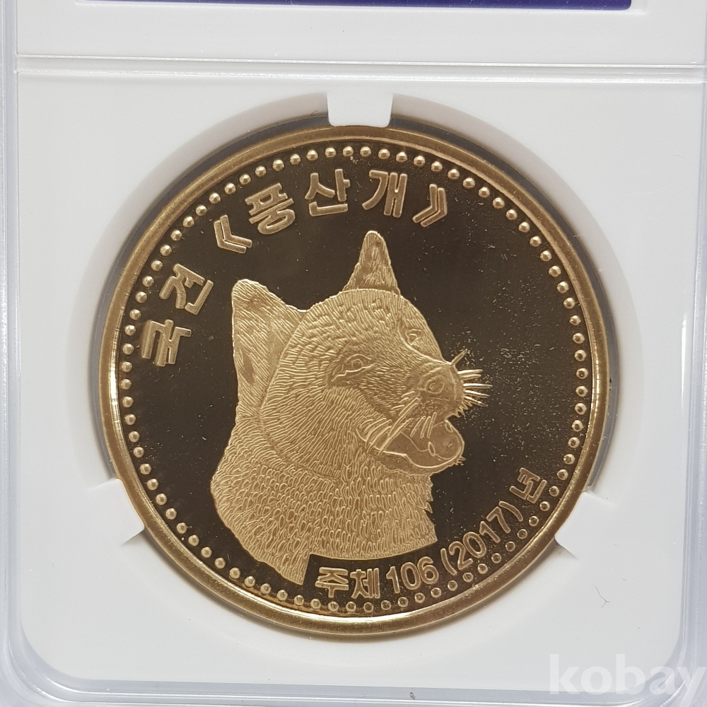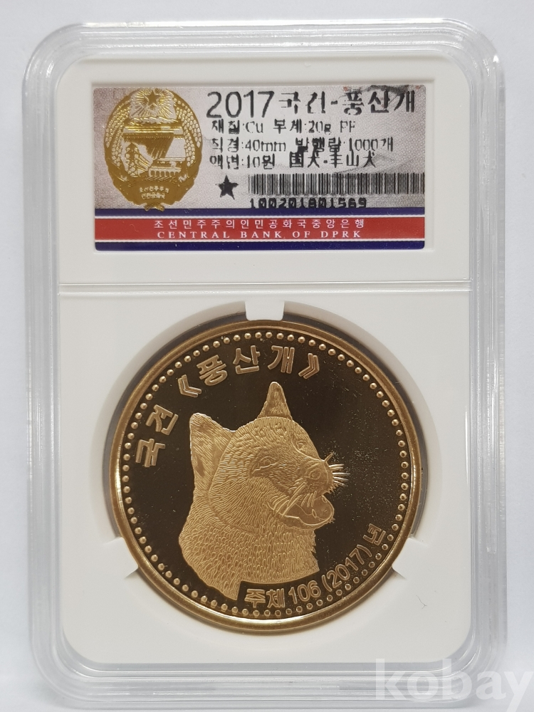 - 2017년(주체106) 국견 - 풍산개 10원 프루프 인증 주화