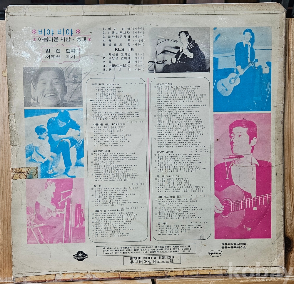 포크 가수의 대표 남자가수 [ 서유석 ] 선생님께서 71년도에 발매한 비야비야 음반 입니다.! 보통은 좌측에 아름다운사람 빨간글씨로 적혀 있는게 많지만 이음반은 [ 비야비야 ] 글씨가 좌측에 있는 극초반 초기 음반 으로써 컬렉터 희귀반 입니다.