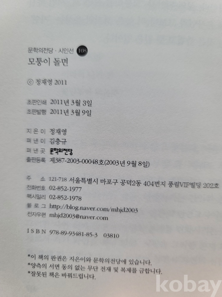 '문학의전당'에서 '문학의전당•시인선[108]'으로 발행.