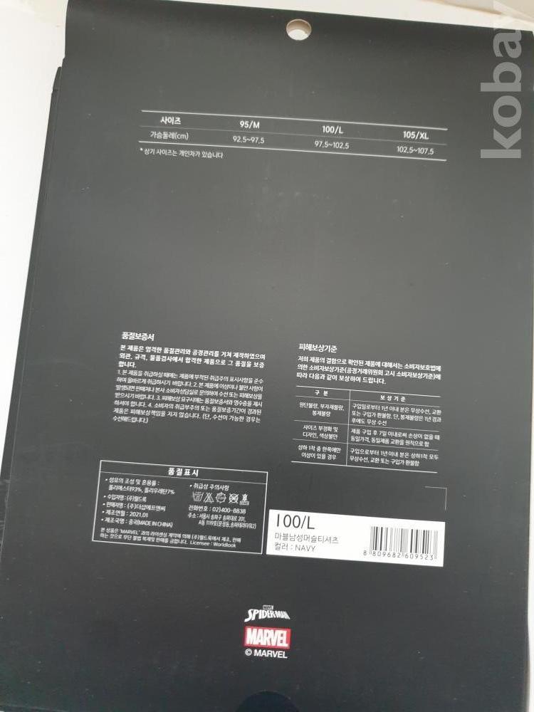 [천원경매] 12-133 마블 남성 머슬 티셔츠(미개봉제품, 사이즈 100 L, 네이비, 2개)