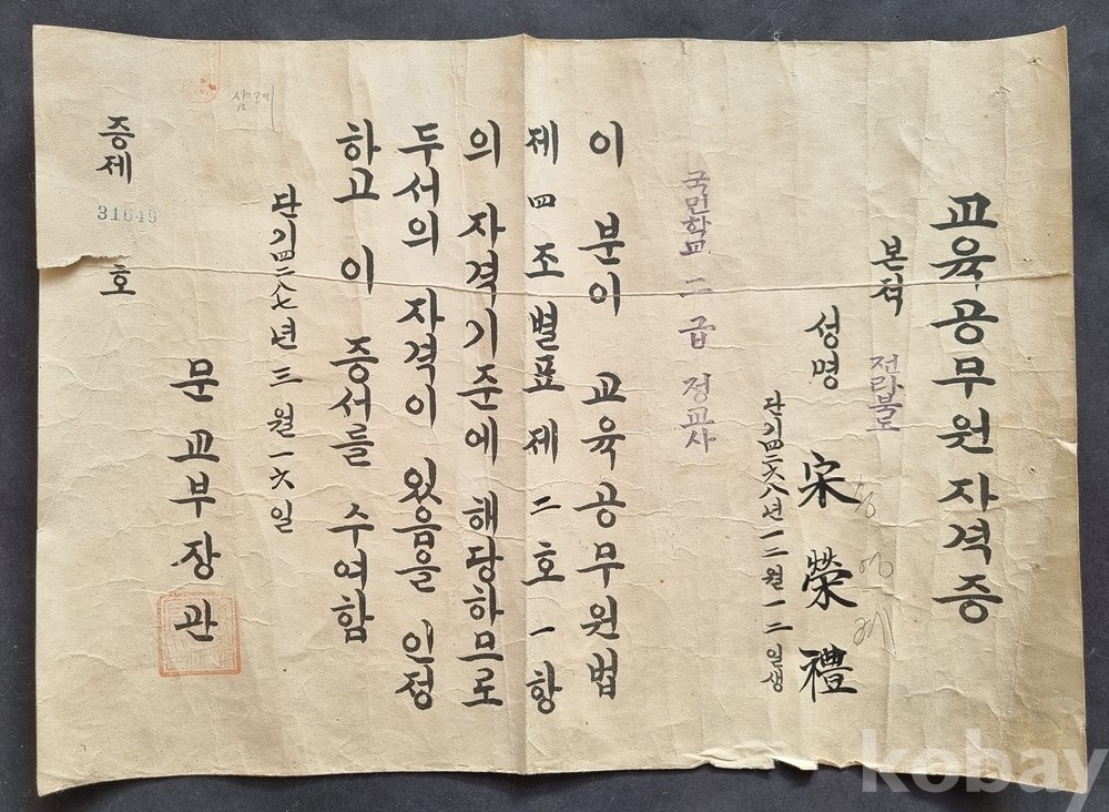 | 제조국 | 한국 | 연대 | 1945년~1959년 |