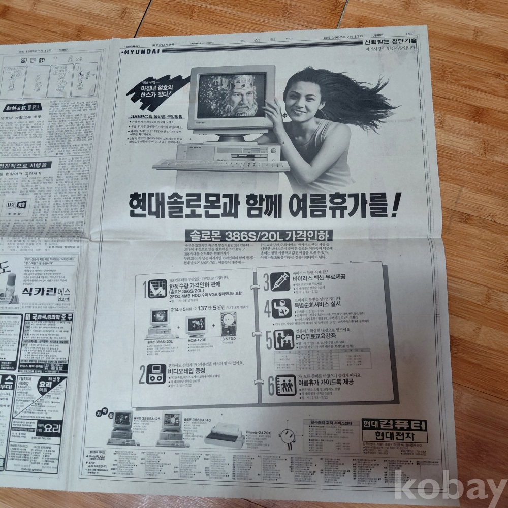 컴퓨터 광고 조선일보 92년7월13일 올려드립니다