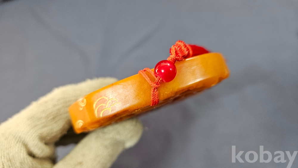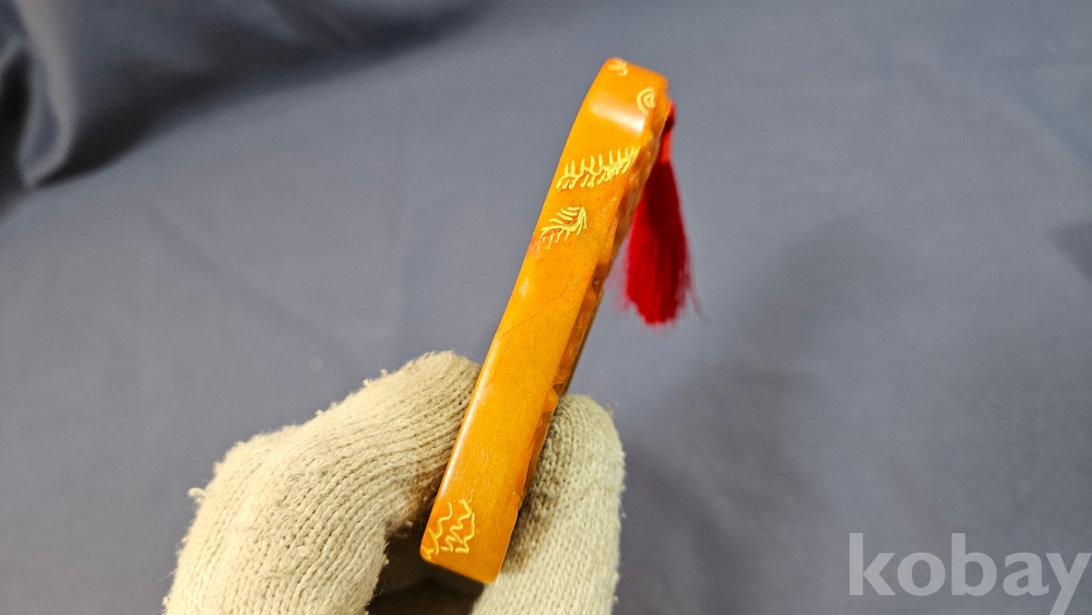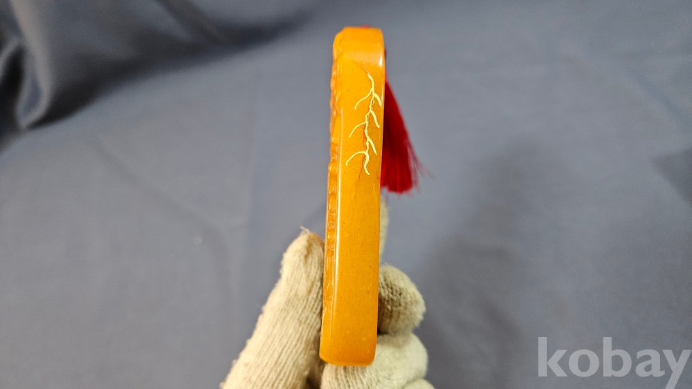빛이 투과가 잘되는 노란색 옥 재질입니다.