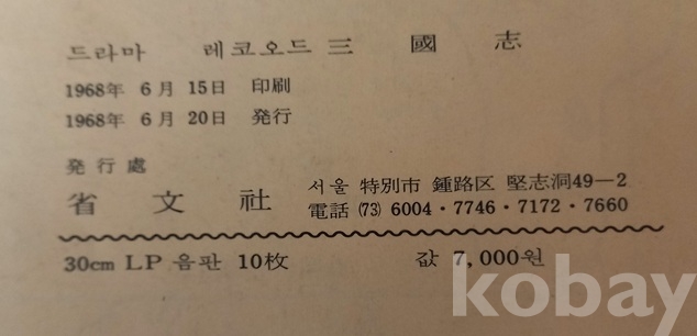 ◆ 드라마 레코오드 三國志(省文社), 10LP. 책자내장. 박스반.