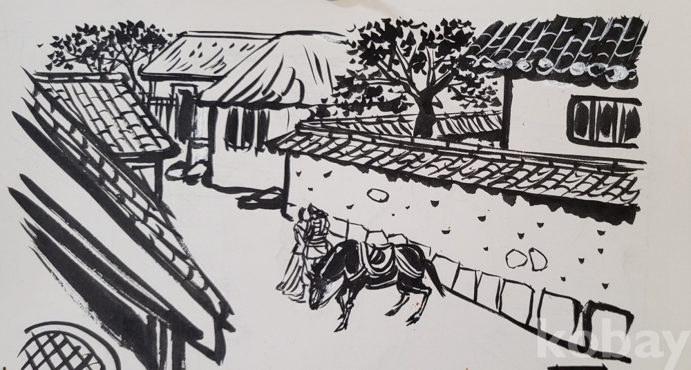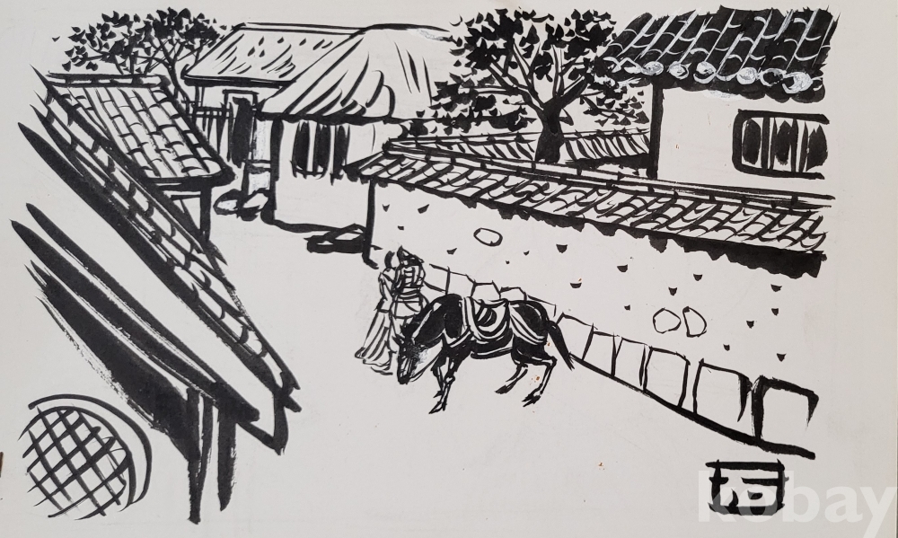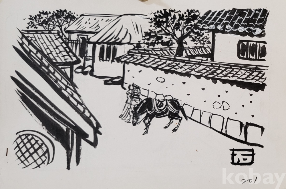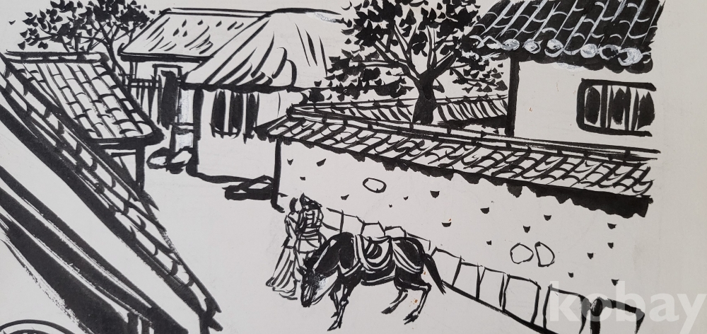 ### 스케치 북에 그린 것으로 어떤 삽화 뒷면에는 1984ㅡ5년 8월 ㅡ10월등의 날인(日印)이 있읍니다,
