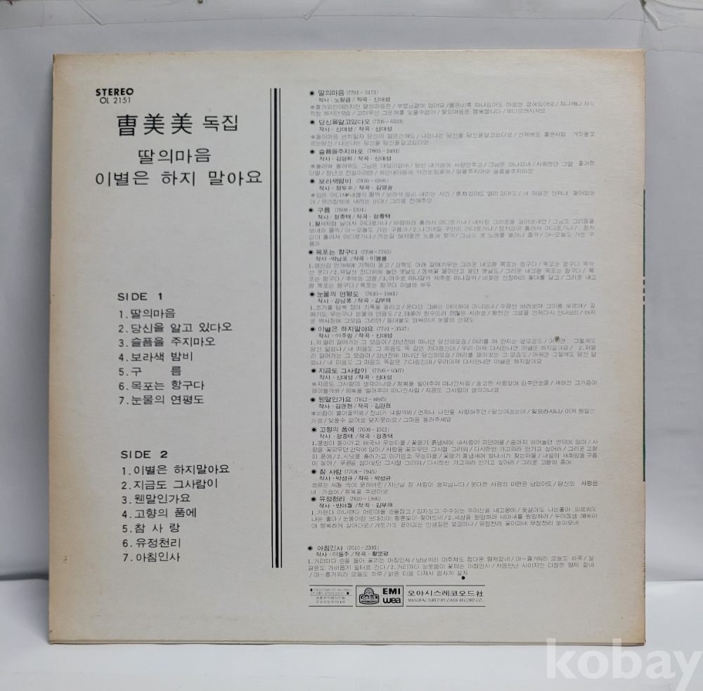* 커버 : EX / 음반 : EX / 가사지 없음 / 발매 : 오아시스